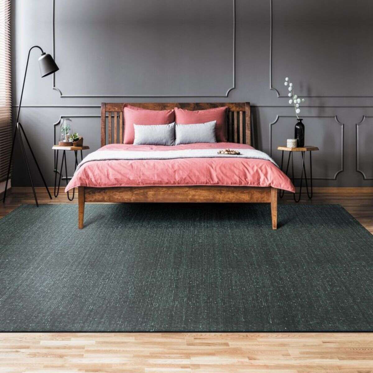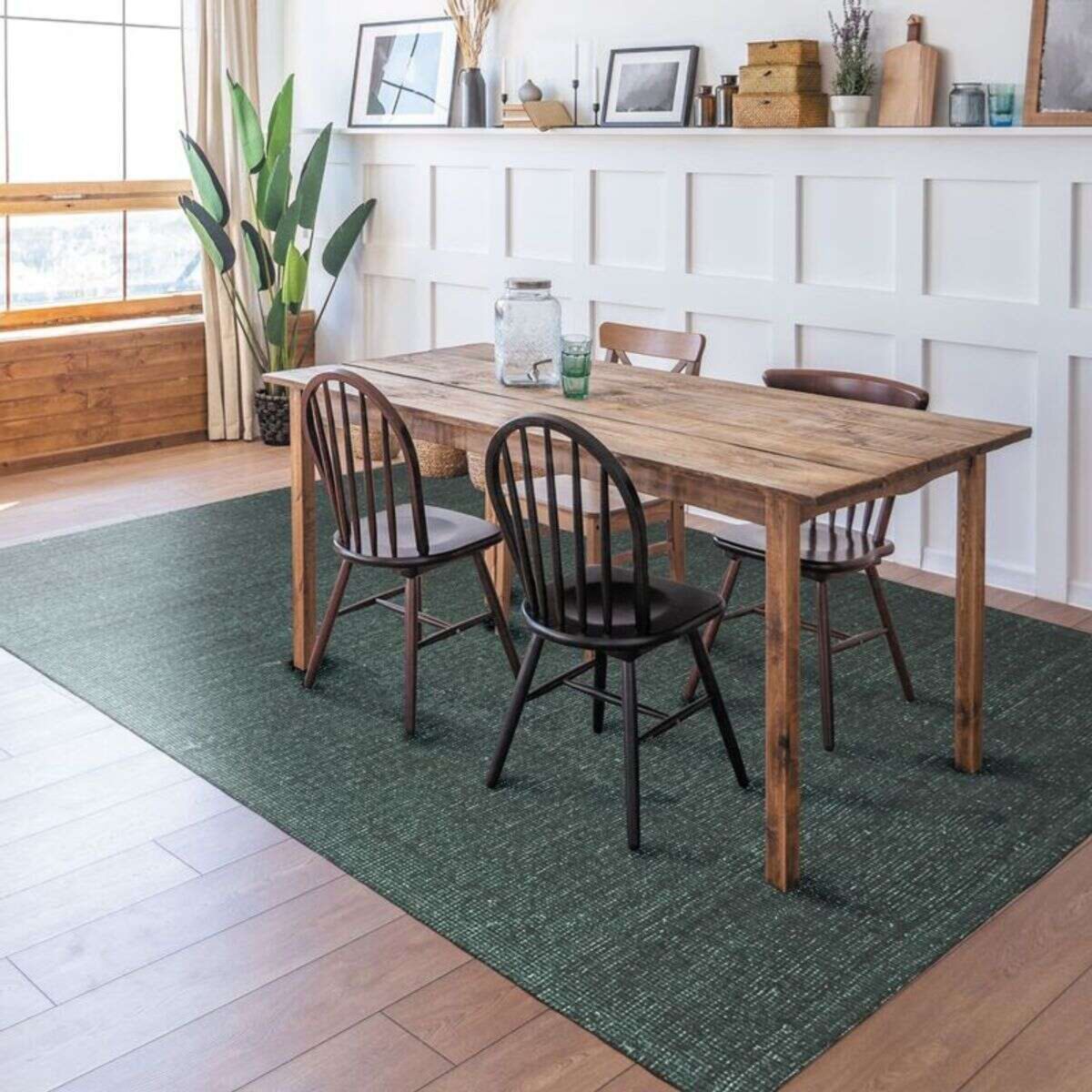 Tapis en laine et coton vert foncé 190x290