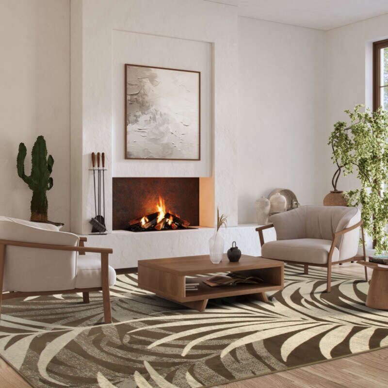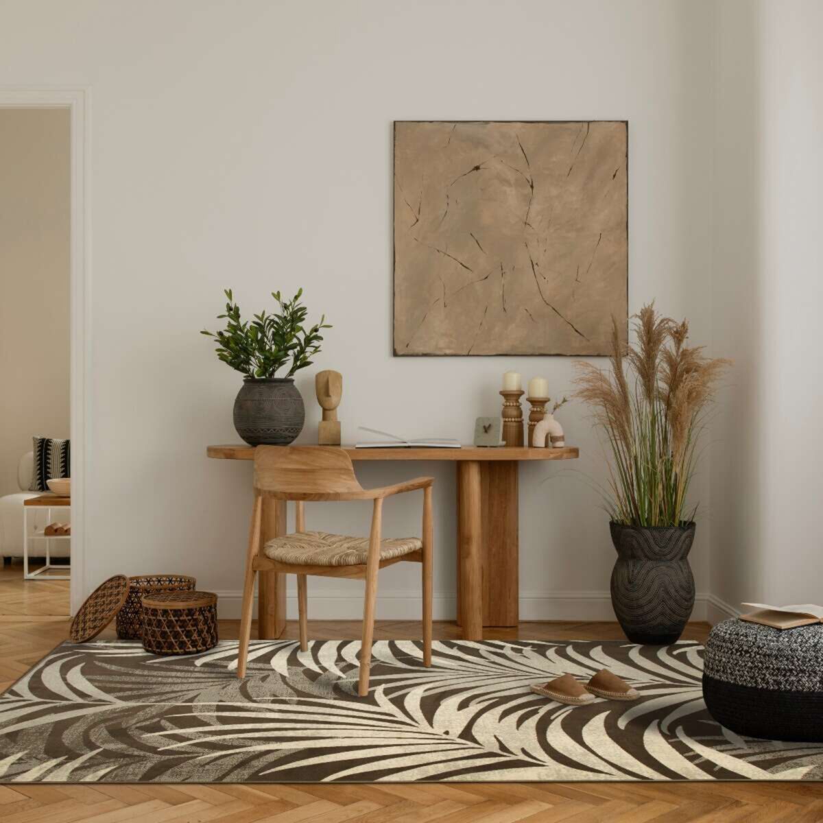LEAVES, un tapis élégant aux motifs de feuilles tropicales, idéal pour apporter une touche exotique et naturelle à votre intérieur.