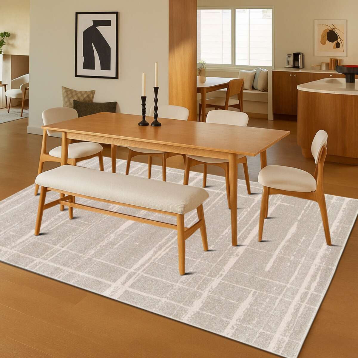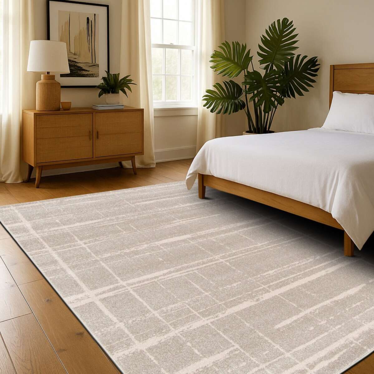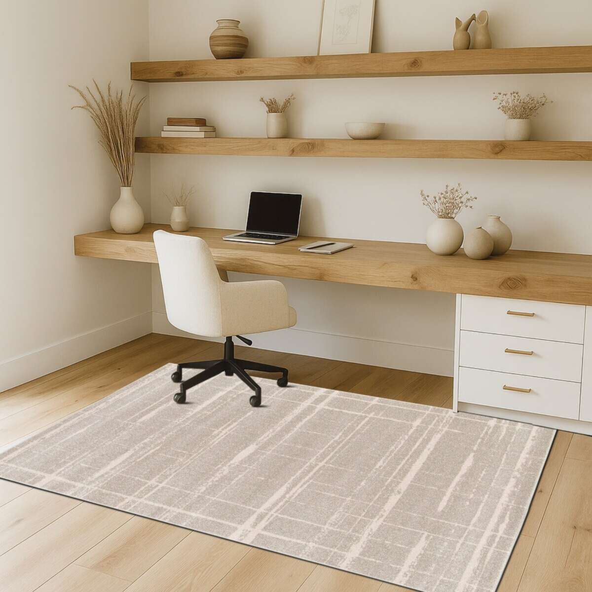 Ses nuances de beige et de gris clair, relevées par un motif géométrique subtil, créent une atmosphère élégante et apaisante. Grâce à son design épuré, ce tapis s’intègre harmonieusement dans tous les styles d’intérieur : scandinave, minimaliste ou contemporain.