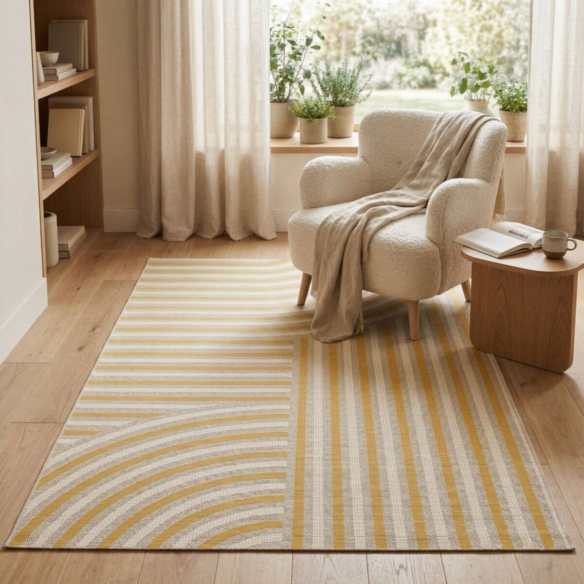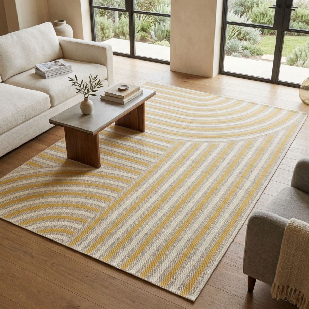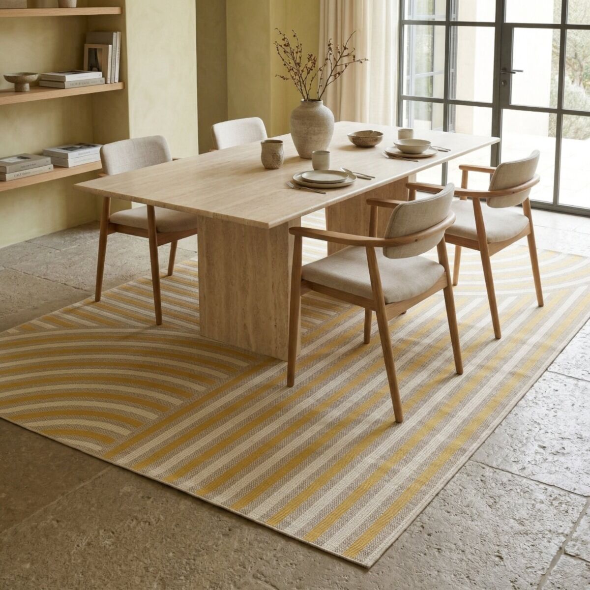 Tapis extérieur intérieur moderne géométrique jaune et beige 120x170