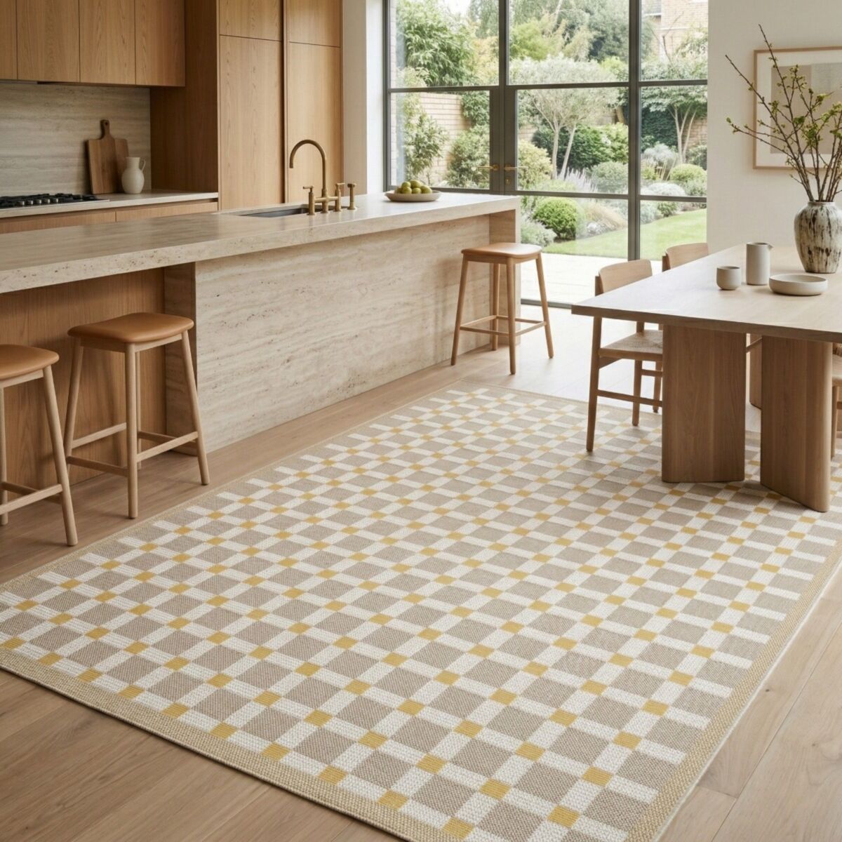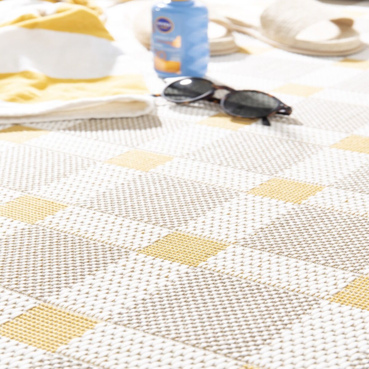 Tapis extérieur intérieur damier moderne jaune et beige 200x290