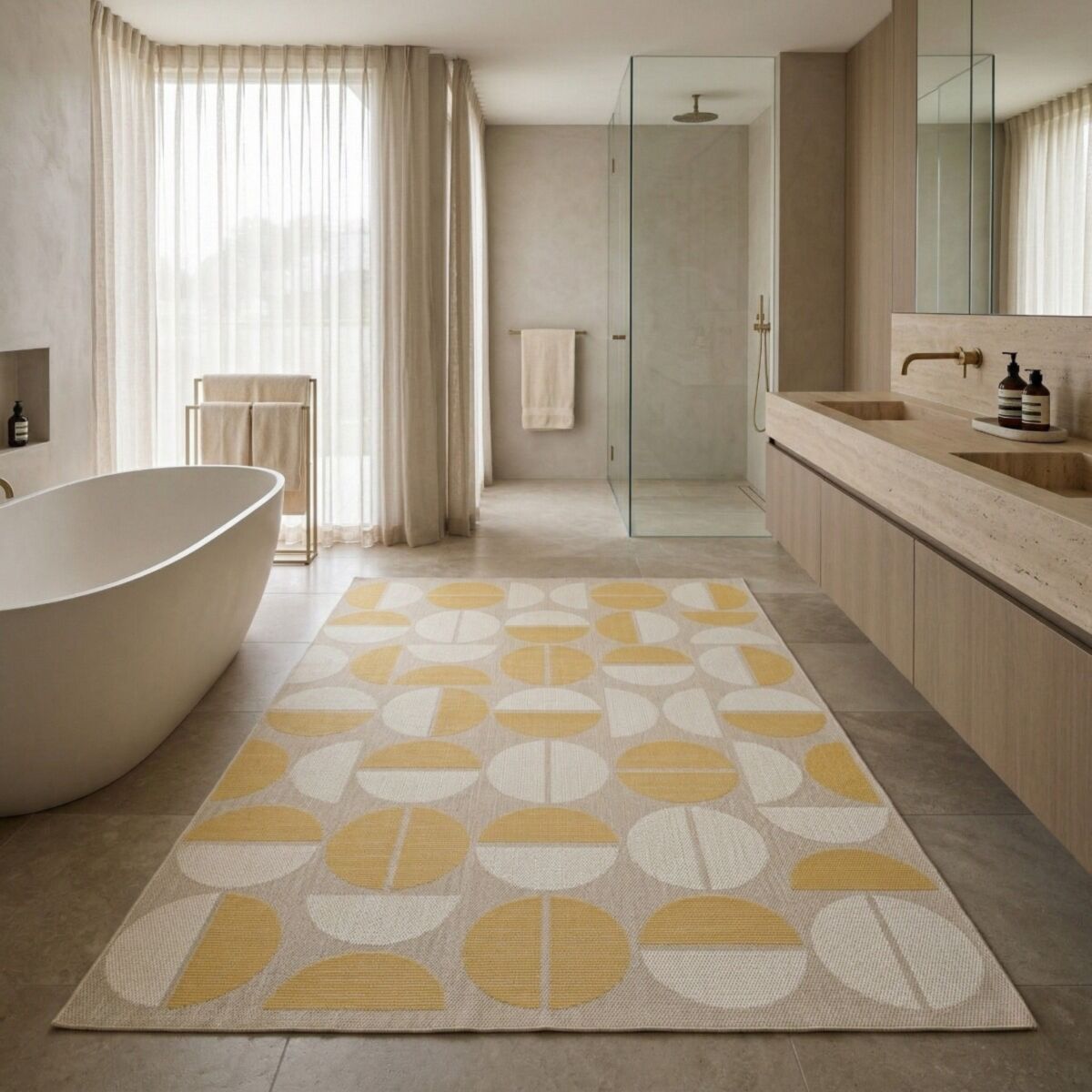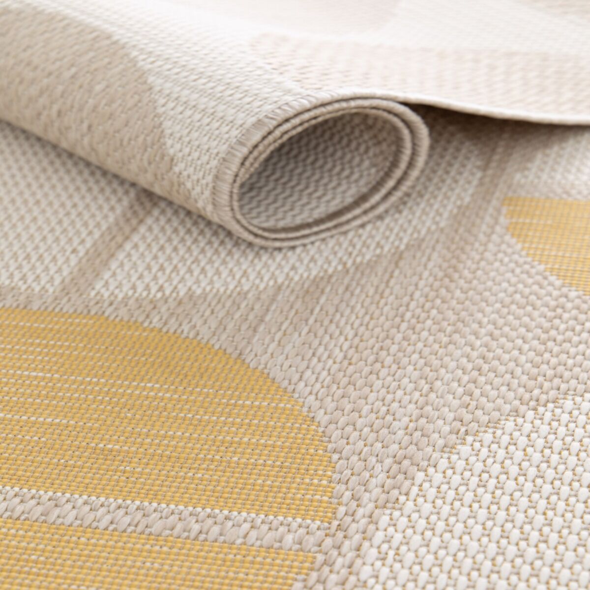 | description du produit_DE | Definieren Sie die Eleganz Ihrer Wohnräume neu mit der Kollektion Sunshine – einer Teppichlinie mit architektonischer Grafik, die für einen nahtlosen Übergang zwischen Innen- und Außenbereich entworfen wurde. Diese Kollektion verbindet modernen Minimalismus mit technischer Exzellenz und verleiht Ihrer Dekoration eine anspruchsvolle Leuchtkraft. Mit höchstem Anspruch entwickelt, wird jedes Stück in Europa aus hochverdichteten RPET-Fasern gewebt. Dieses hochwertige recycelte Polyester bietet eine edle textile Haptik, die weit über herkömmliche Outdoor-Standards hinausgeht, und garantiert gleichzeitig eine bemerkenswerte Langlebigkeit. Seine flache Struktur, die zugleich dicht und geschmeidig ist, sorgt für perfekten Halt und absolute Widerstandsfähigkeit im Alltag. Als echte In & Out Signatur ist die Sunshine-Serie UV-beständig und fleckabweisend behandelt, sodass die Brillanz ihrer Nuancen Saison für Saison erhalten bleibt – ob im Wohnzimmer oder auf der Terrasse. Funktionale Exzellenz: