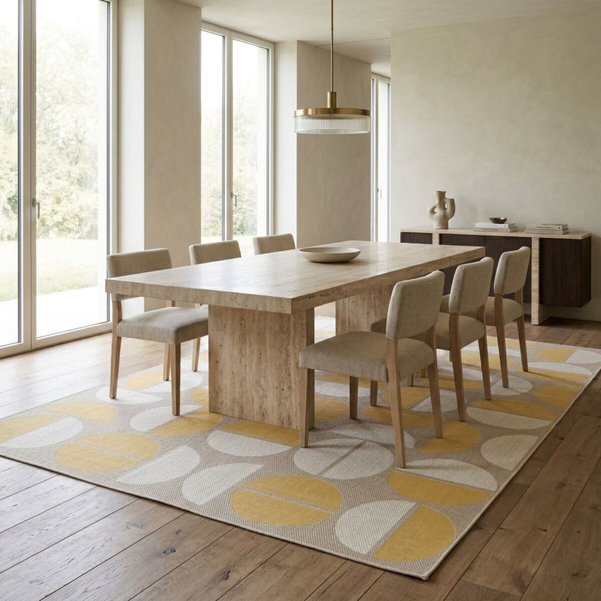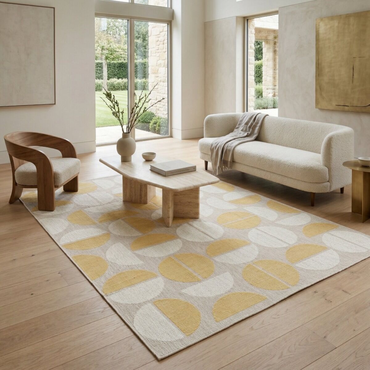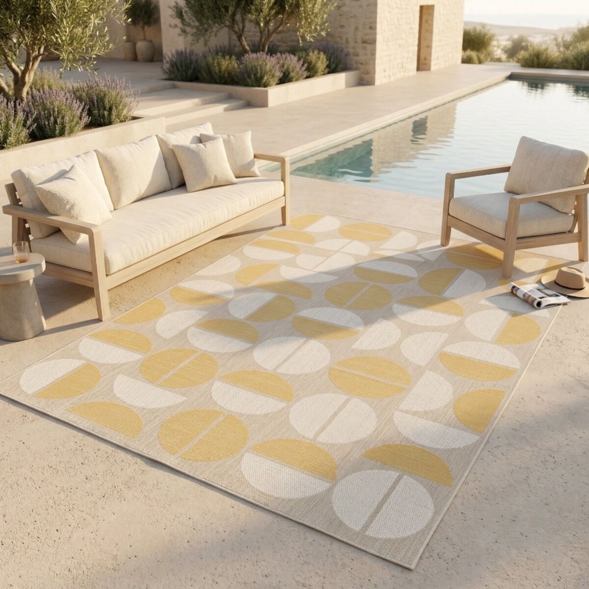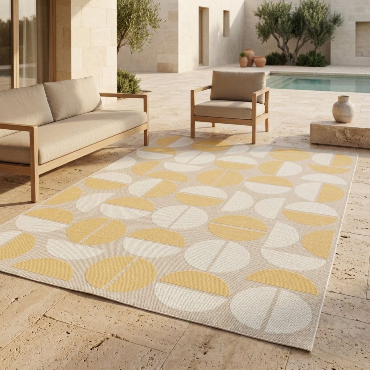 Tapis extérieur intérieur moderne géométrique jaune et beige 160x230