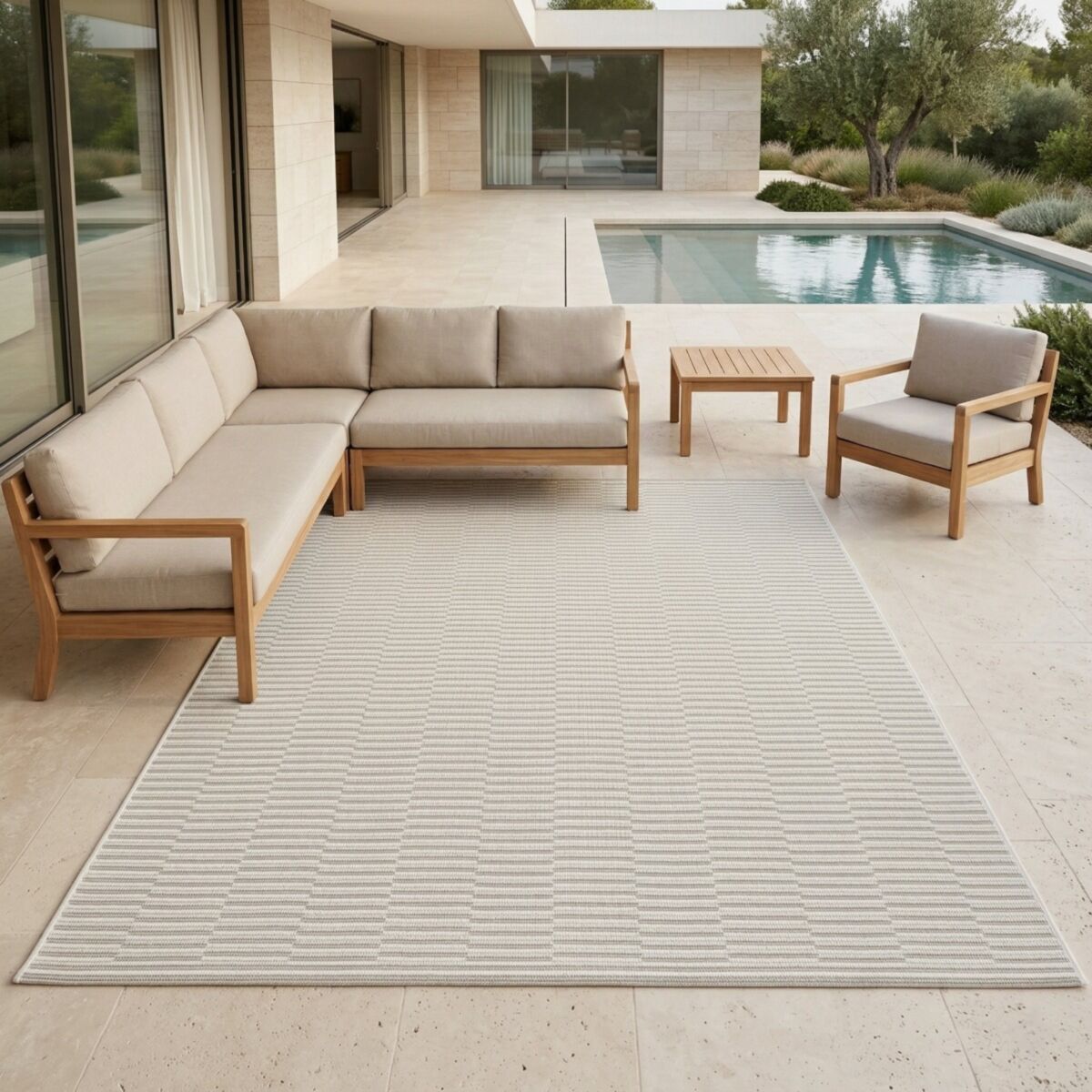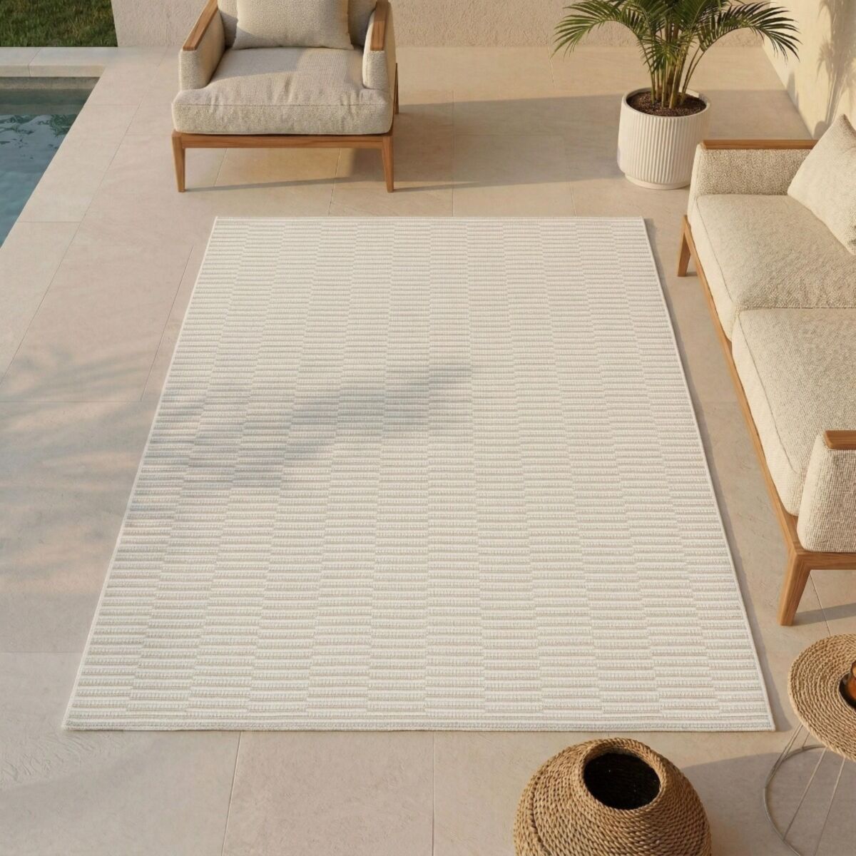 Tapis extérieur intérieur motif géométrique tissé crème 120x170