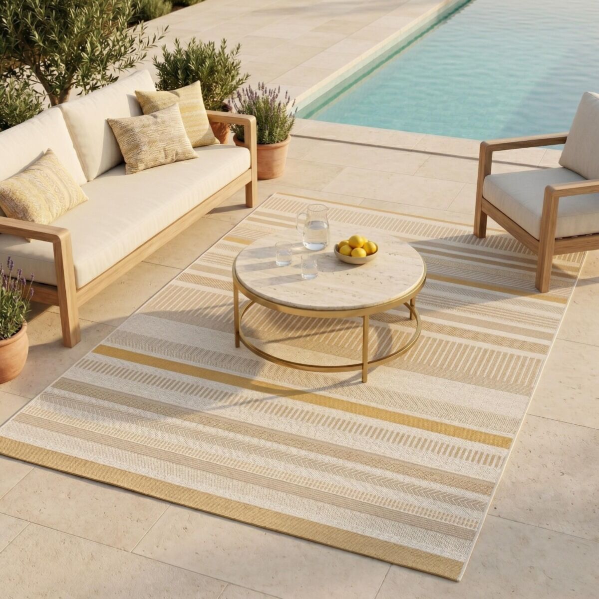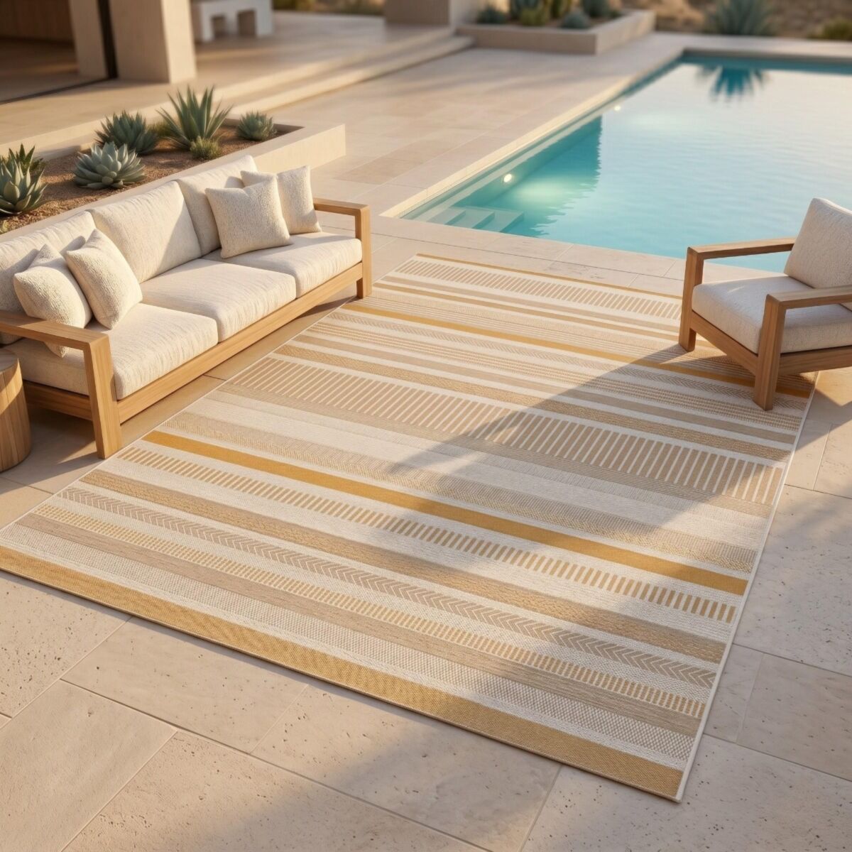 Tapis extérieur intérieur moderne lignes jaune beige 120x170