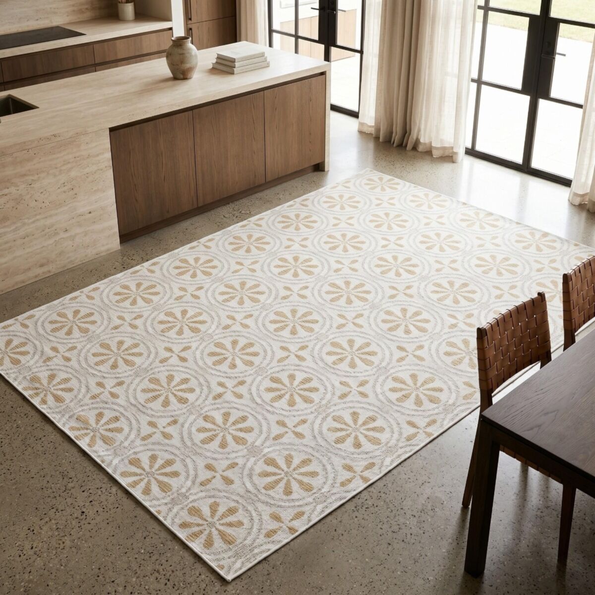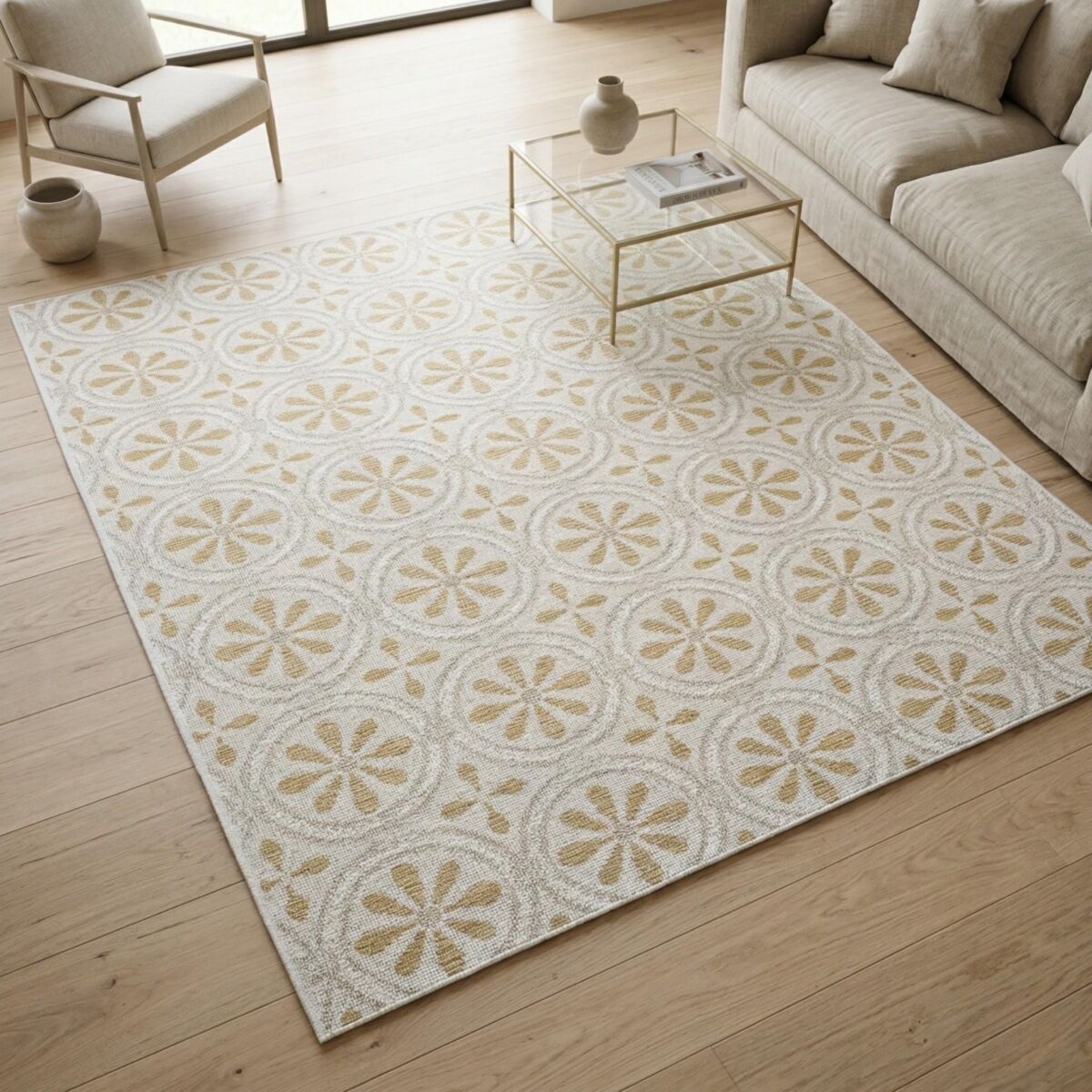 Tapis extérieur intérieur moderne jaune et beige 120x170