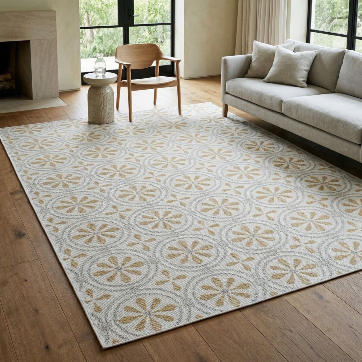 Tapis extérieur intérieur moderne jaune et beige 160x230