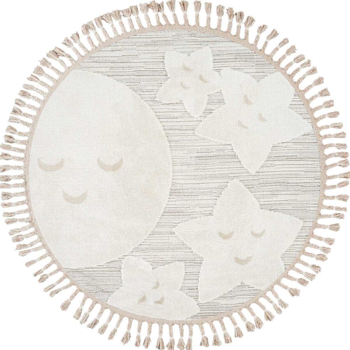 Tapis enfant rond doux motif étoiles blanc 130x130