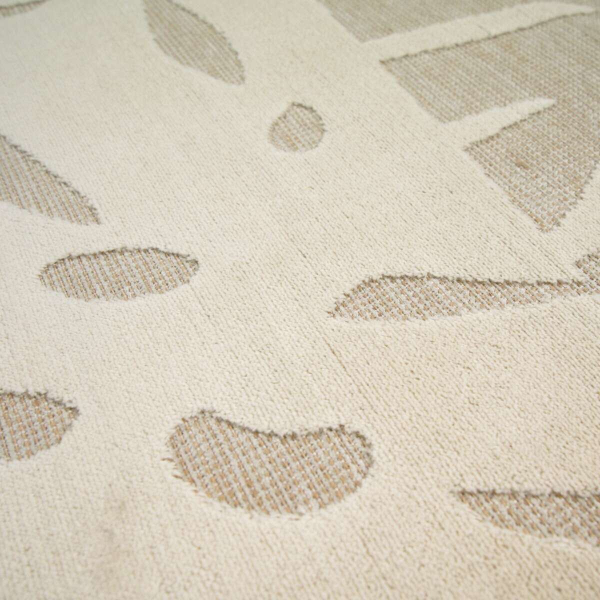 | description du produit_IT | Questo tappeto in viscosa di alta qualità conquista con il suo tocco setoso e il motivo di fogliame grafico ispirato alle forme vegetali tropicali. Le sue tonalità neutre e rilassanti lo rendono un elemento perfetto per creare un’atmosfera bohémien chic, naturale o contemporanea ed essenziale. Realizzato con cura in Europa, questo tappeto è certificato OEKO-TEX®, garanzia di qualità e rispetto degli standard tessili moderni. La sua trama fine e luminosa dona rilievo e morbidezza sia agli interni che agli spazi esterni come la terrazza. |