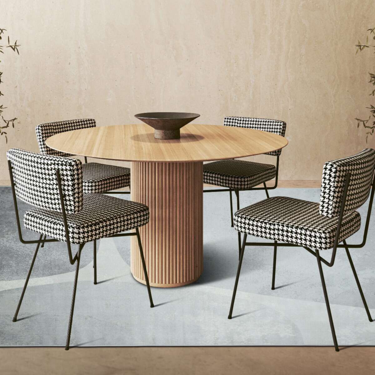 Son motif organique et ses effets de matière légèrement patinés créent un rendu minéral raffiné, à la fois sobre et tendance.