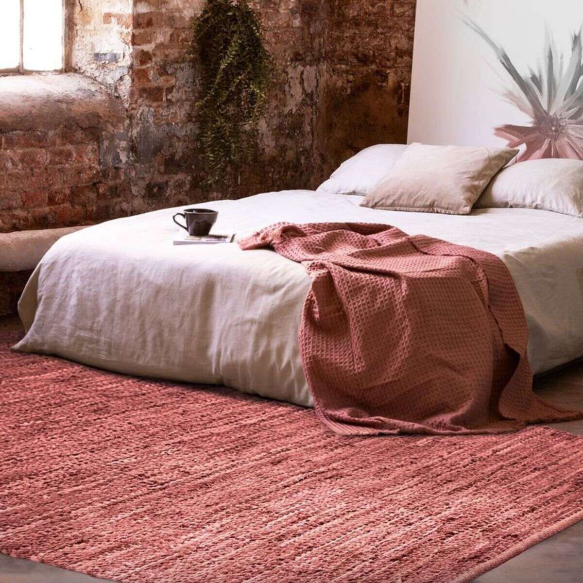 Tapis en cuir tressé rose poudré 190x290