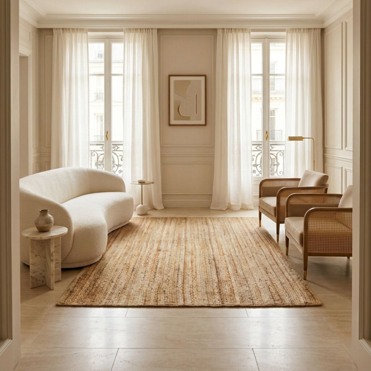 Apportez chaleur et authenticité à votre déco avec le tapis SUNNY JUTE, une pièce artisanale en jute tressé main qui capte la lumière et l’attention.