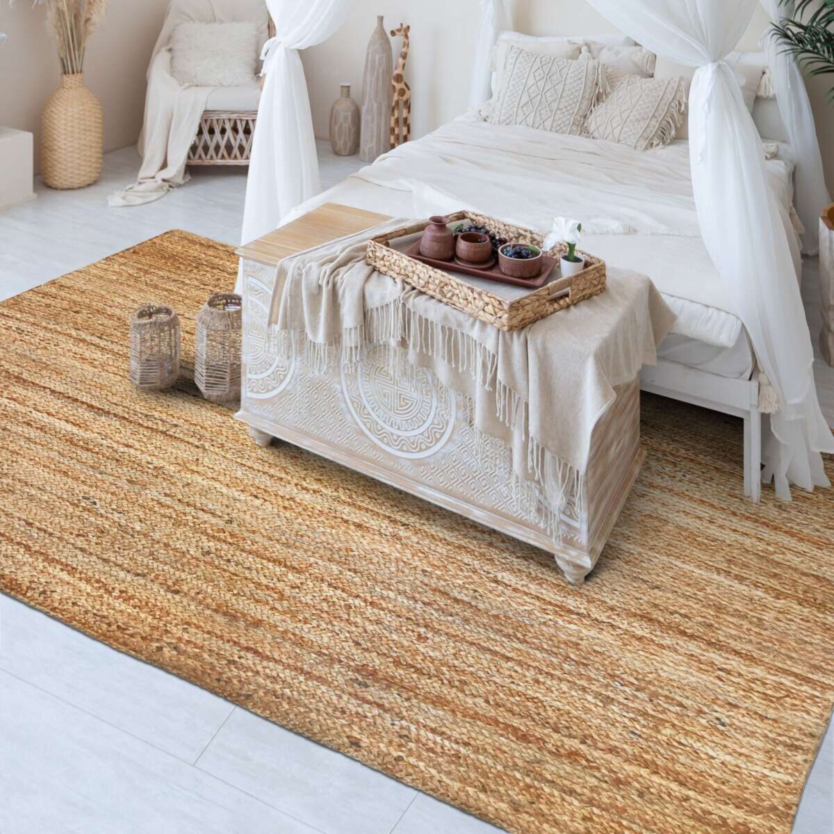 Apportez chaleur et authenticité à votre déco avec le tapis SUNNY JUTE, une pièce artisanale en jute tressé main qui capte la lumière et l’attention.