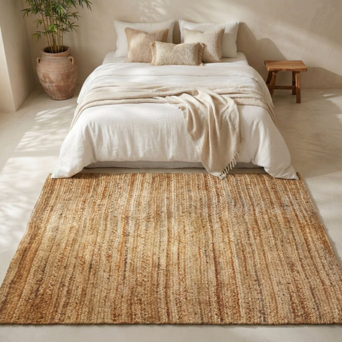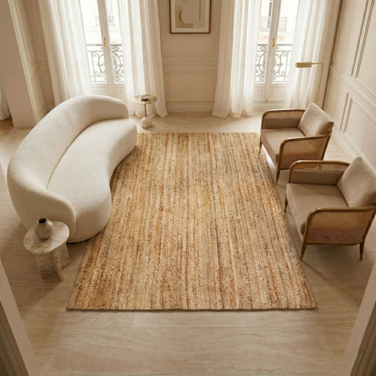 Apportez chaleur et authenticité à votre déco avec le tapis SUNNY JUTE, une pièce artisanale en jute tressé main qui capte la lumière et l’attention.
