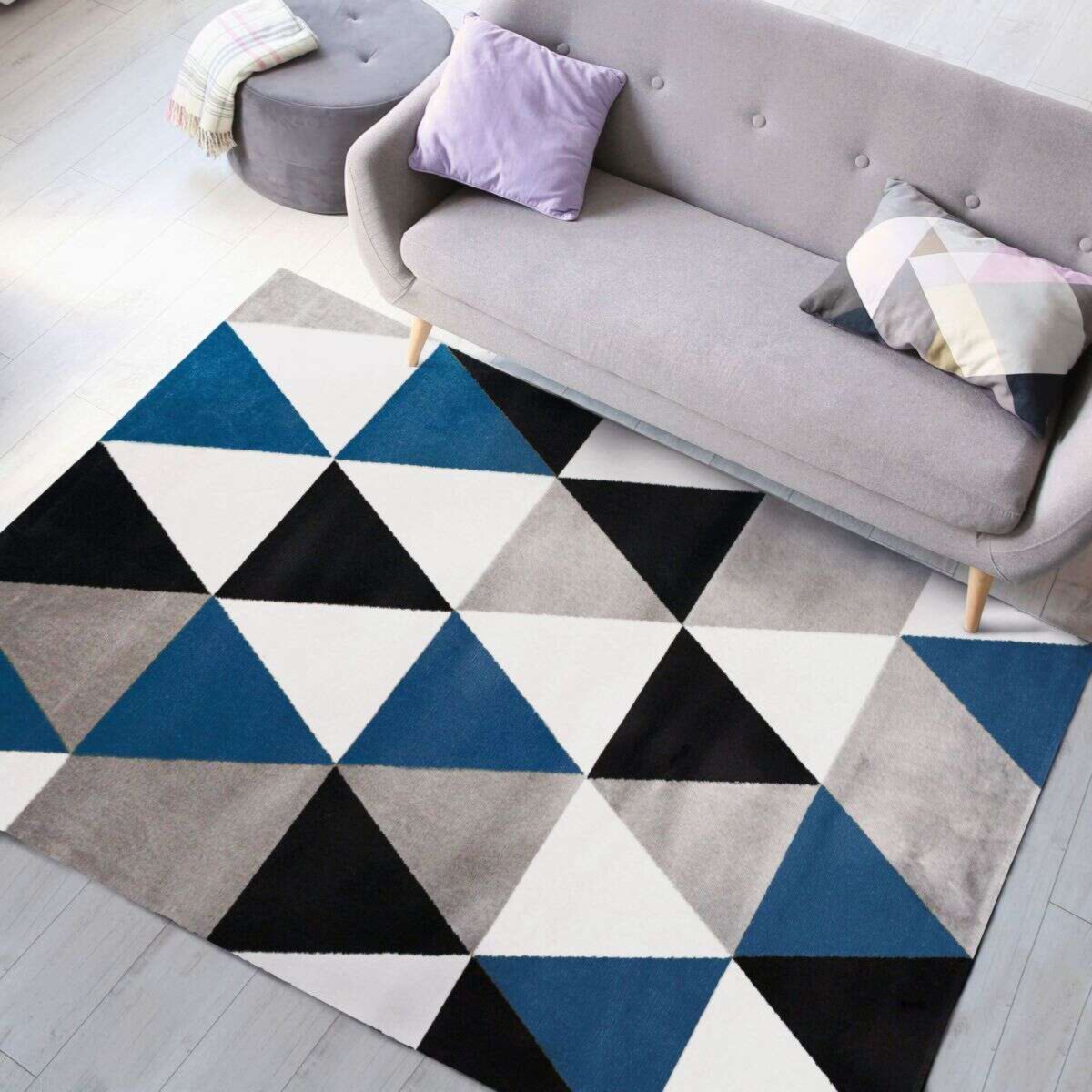 Tapis toucher laineux motif triangles bleu 160x230