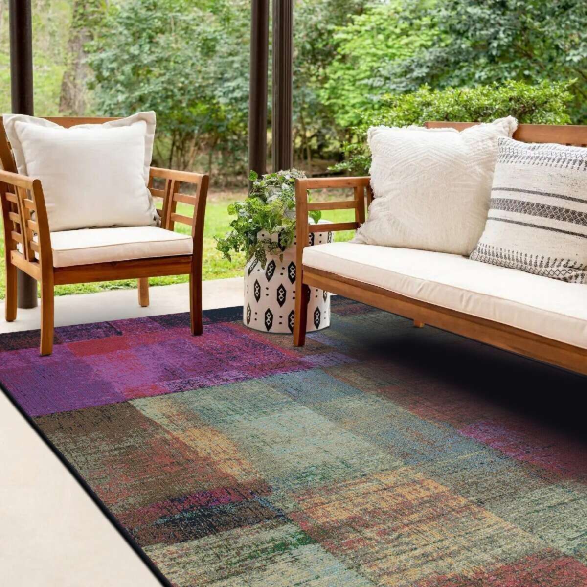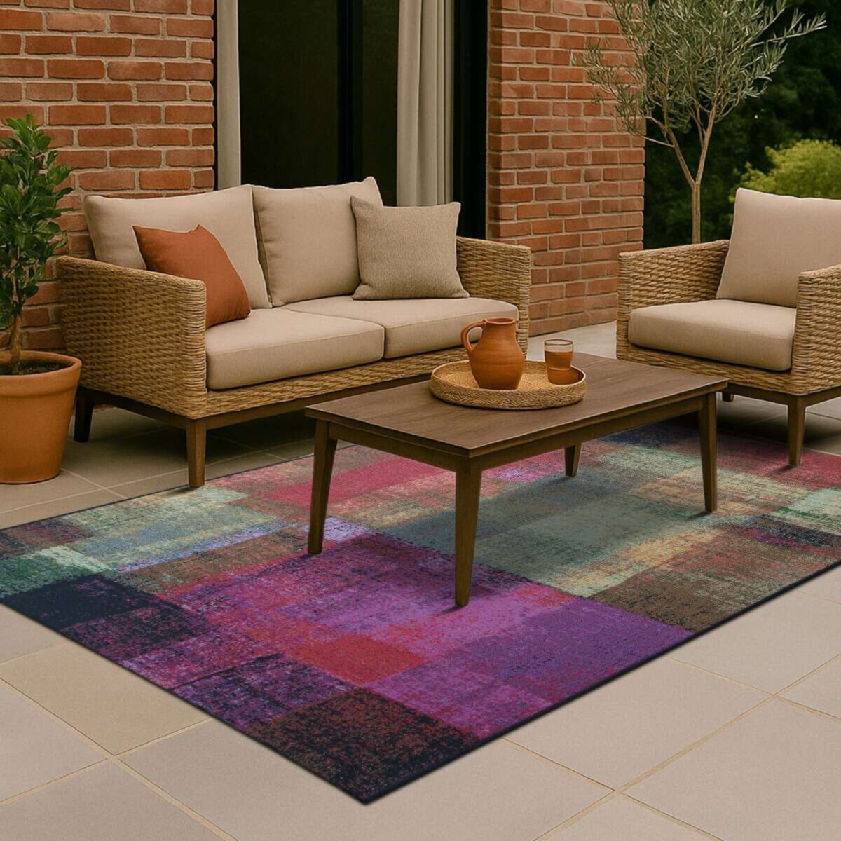 Tapis intérieur extérieur vintage multicolore vert 160x230