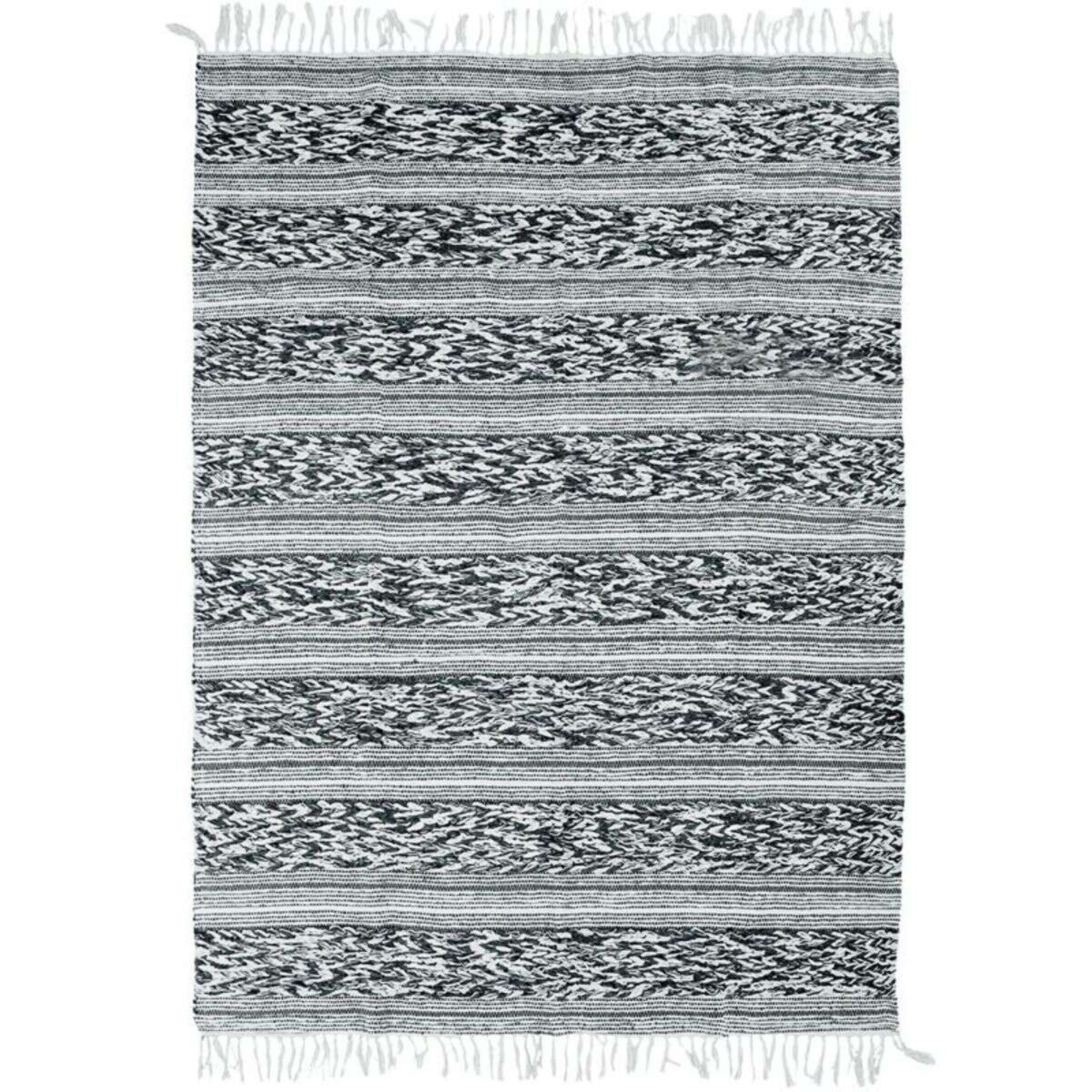 Tapis 100% coton bande relief blanc-noir 120x170