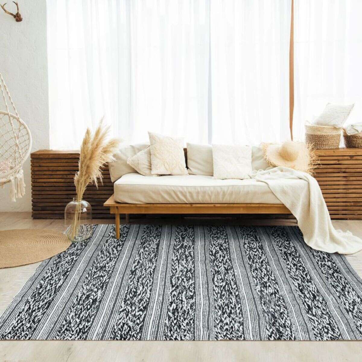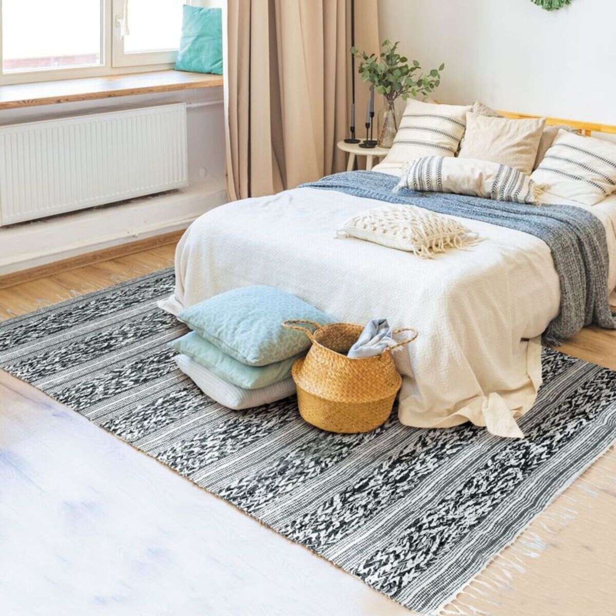 Splendide tapis 100% coton aux allures ethniques pour un intérieur cocooning, chaleureux et tendance.