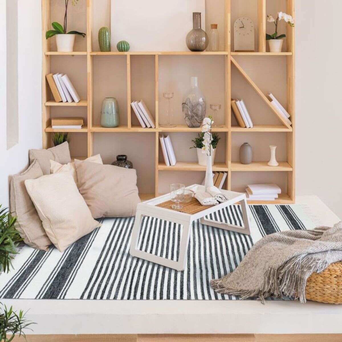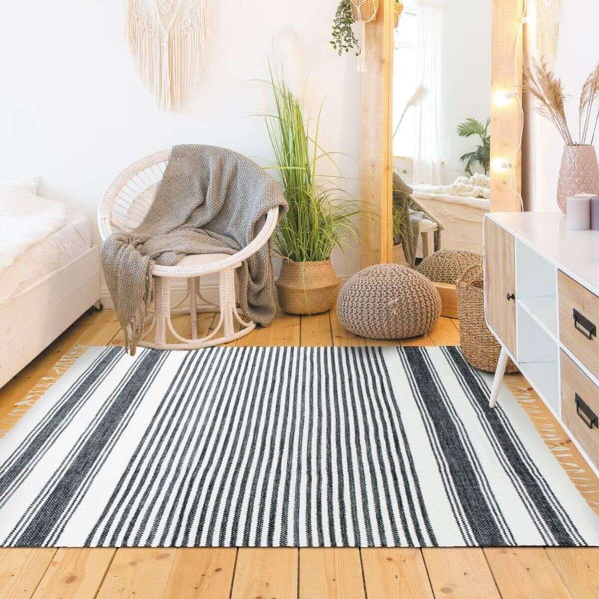 Tapis 100% coton lignes noir-gris-blanc 120x170