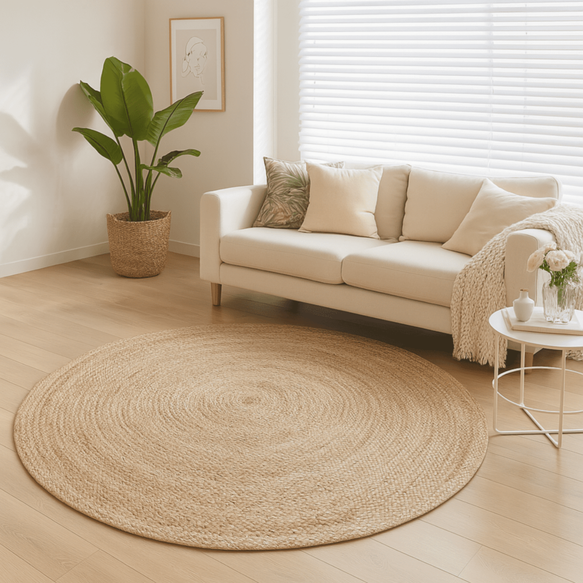 Tapis rond en jute tressé naturel artisanal D160
