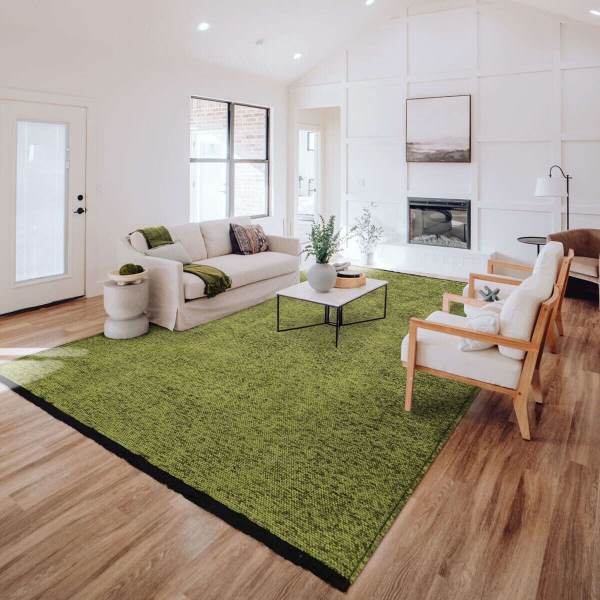 Tapis en coton et polyester lavable tissé plat vert 240x340