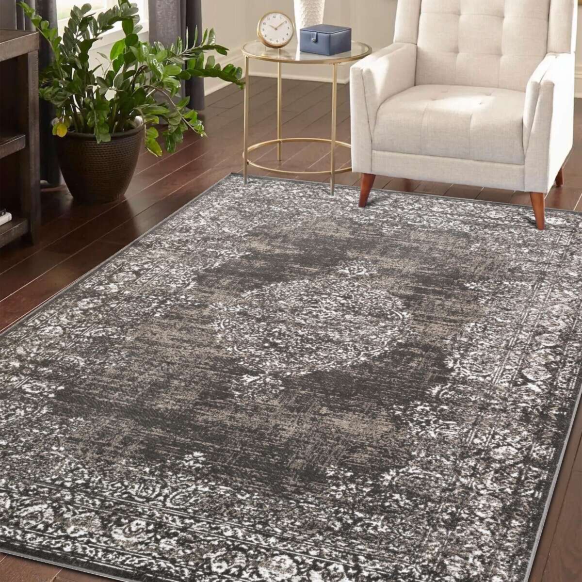 Tapis vintage motif medaillon en relief noir 160x230