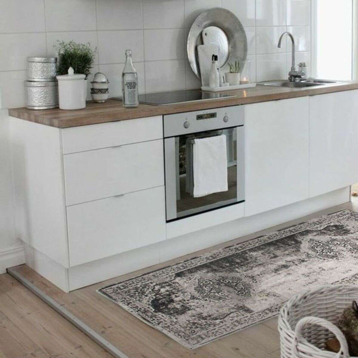 Tapis pour intérieur-extérieur médaillon gris 80x200