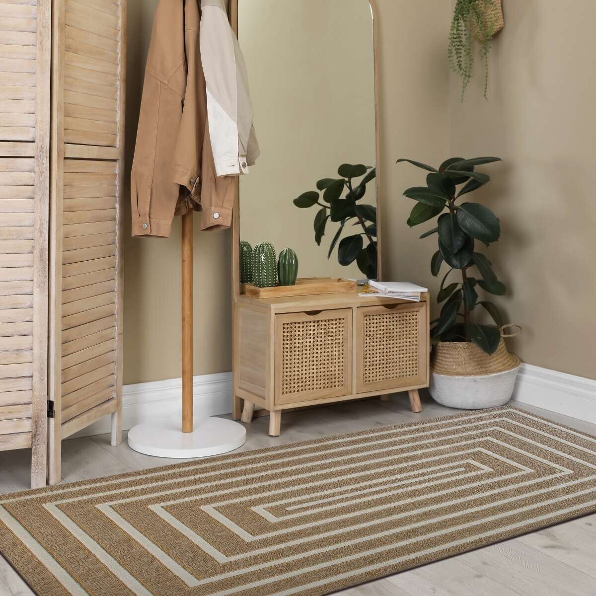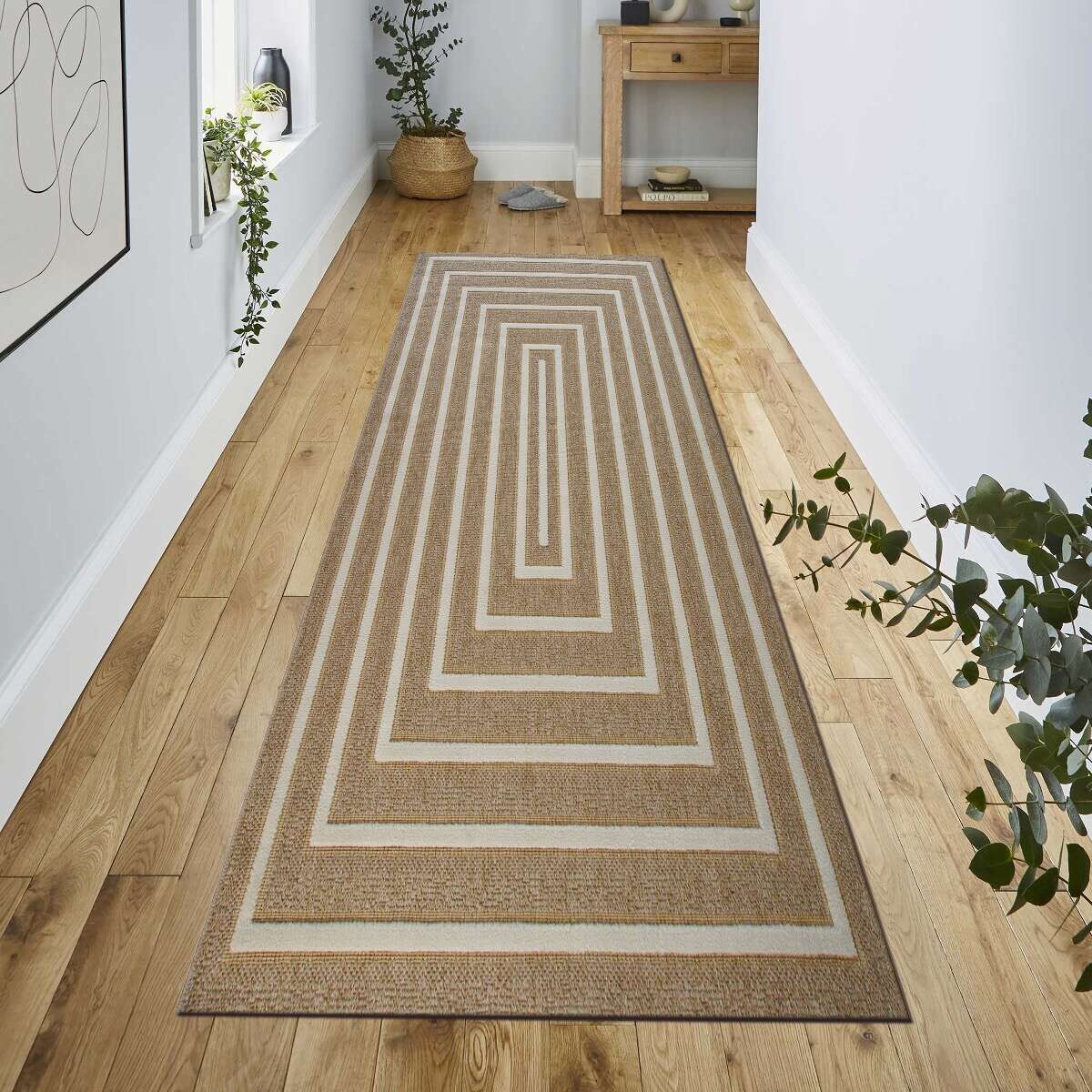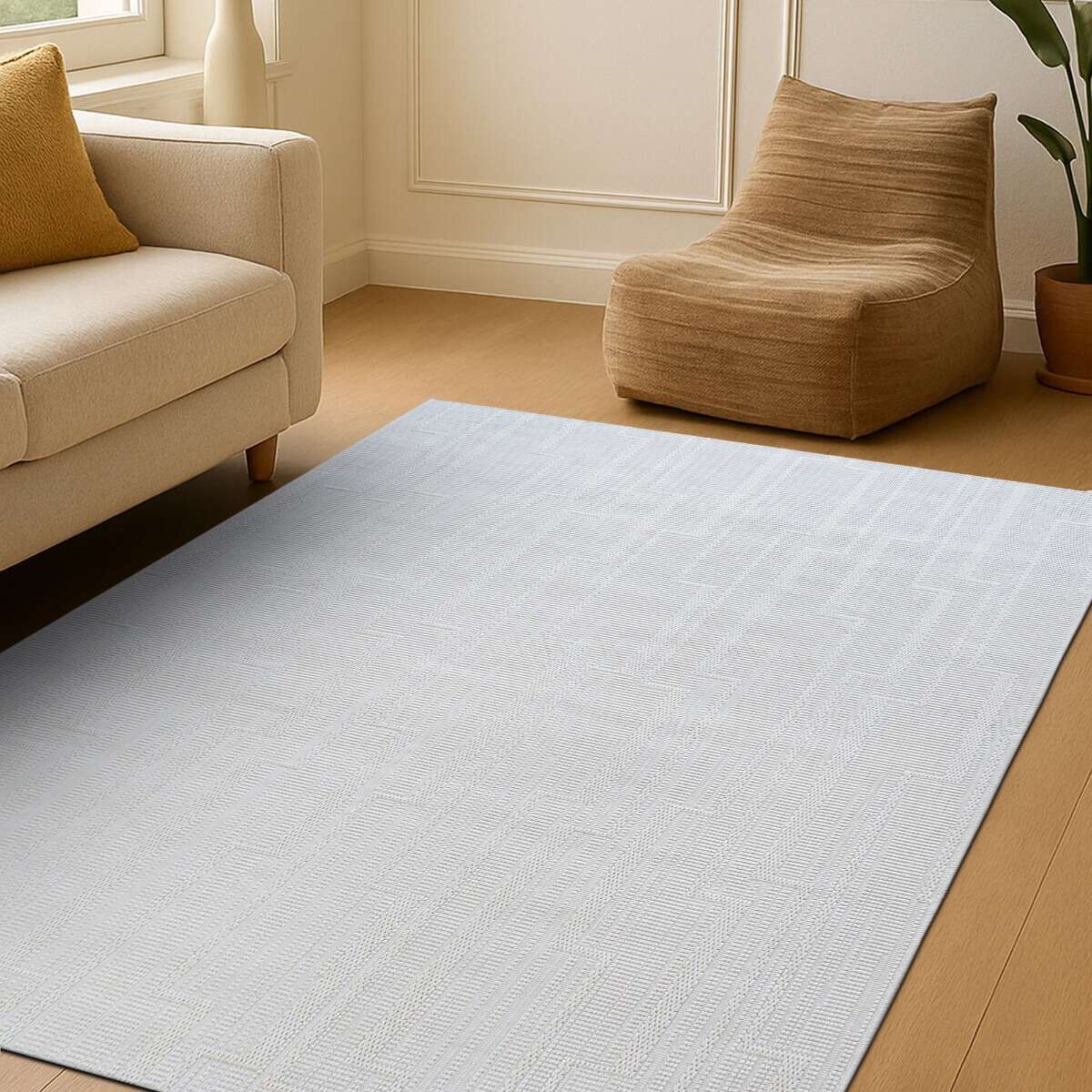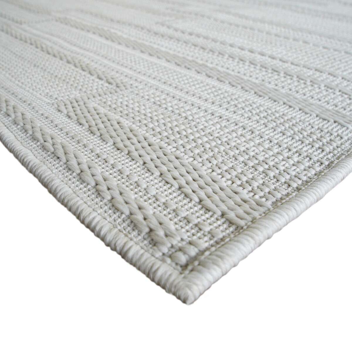 Tapis de couloir effet jute à motif rectangle en relief blanc 80x150