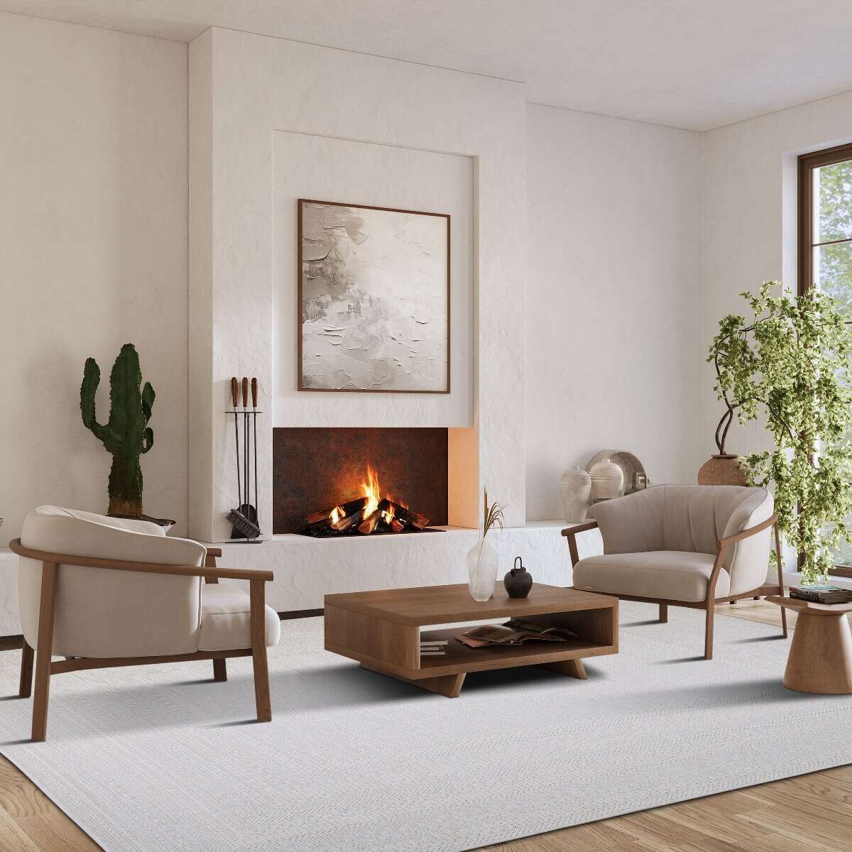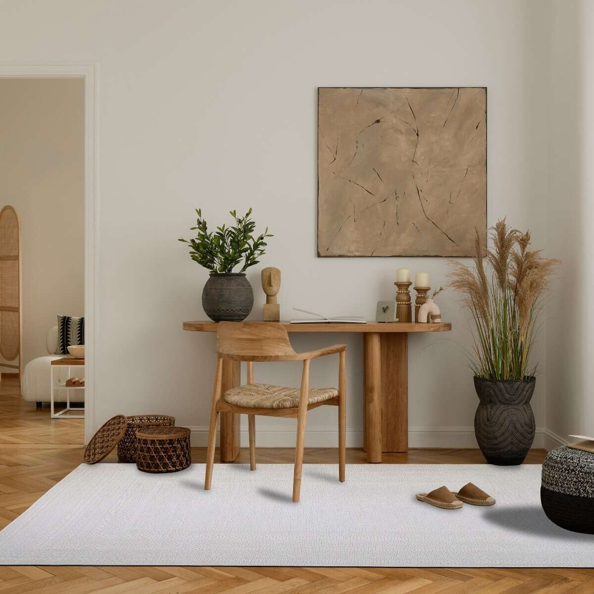 Tapis effet jute à motif rectangle en relief blanc 120x160