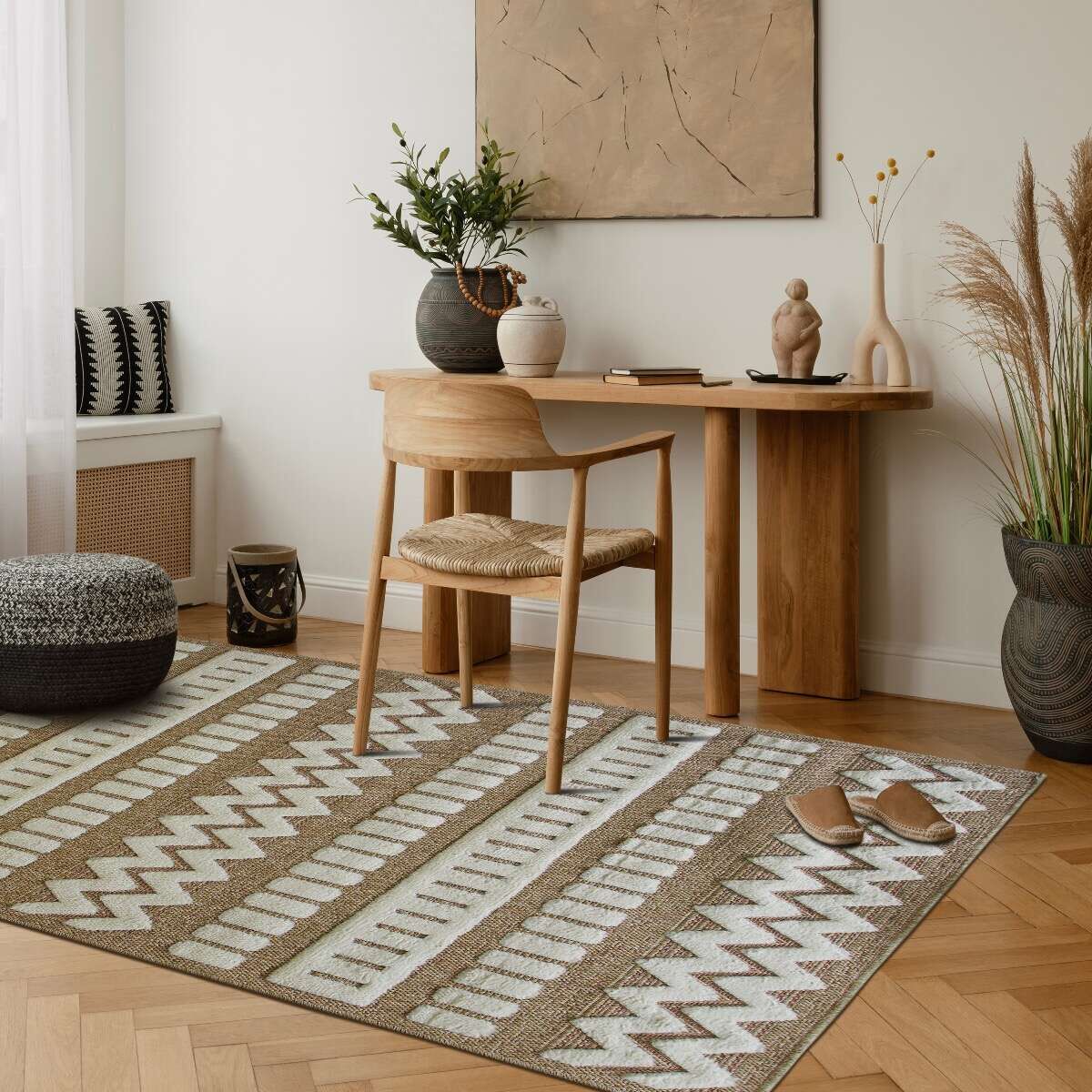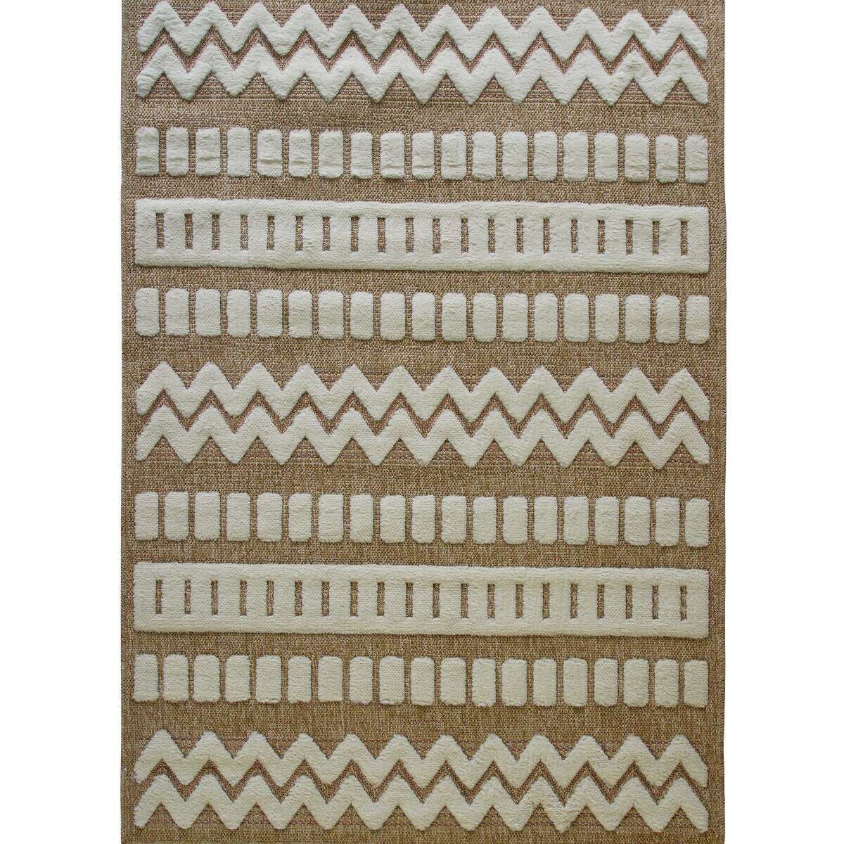 Tapis effet jute à motif géométrique en relief blanc 120x160