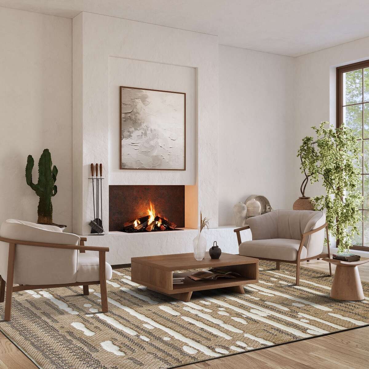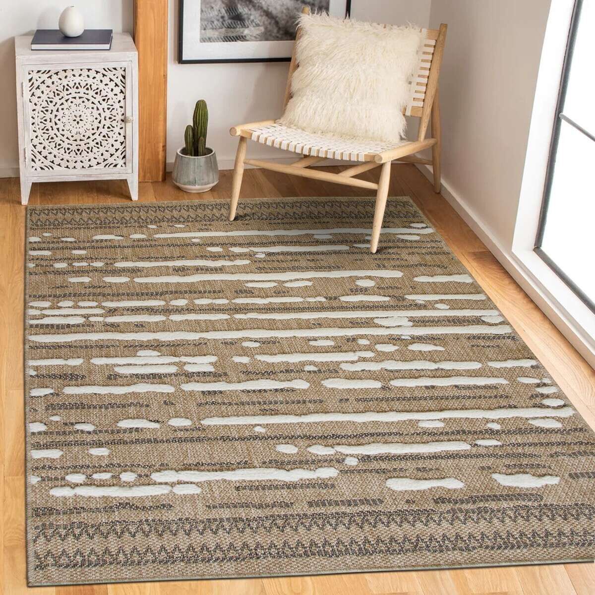 Tapis effet jute à motif géométrique en relief blanc et noir 120x160