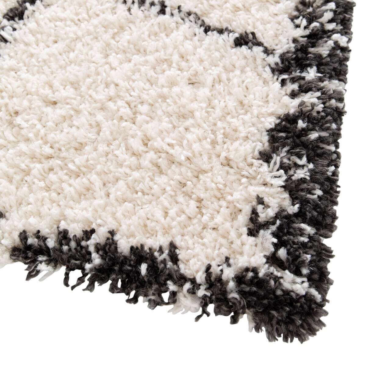 ETHNIC BERBERETapis toucher laineux ethnique écru et noir 120x160