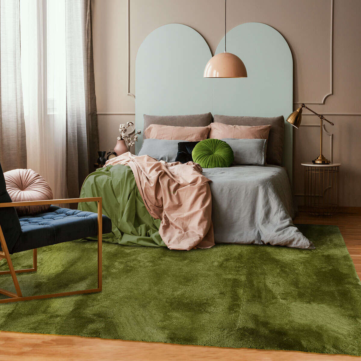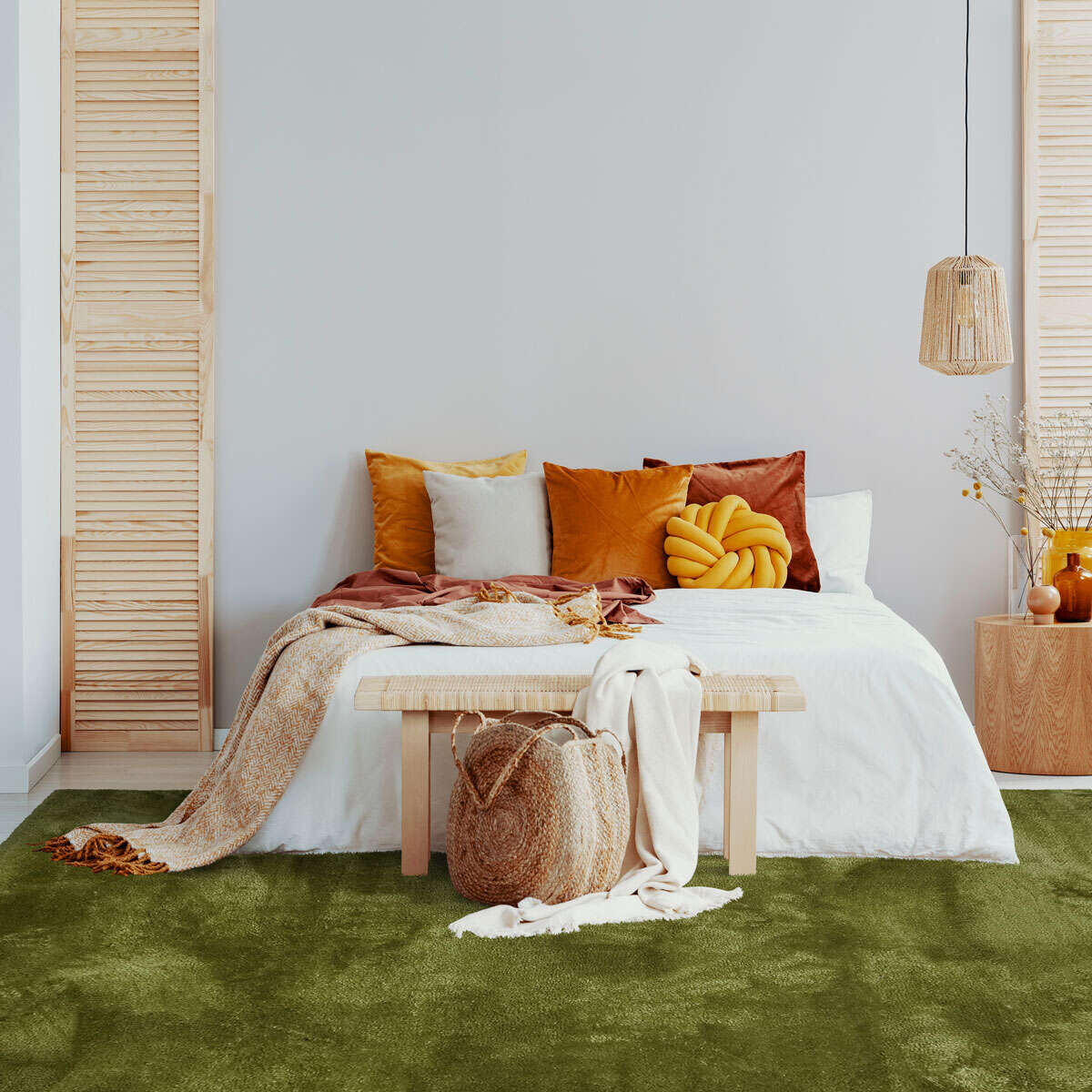 9. SAUVAGE Tapis à poils longs extra-doux vert rouillé 120x160