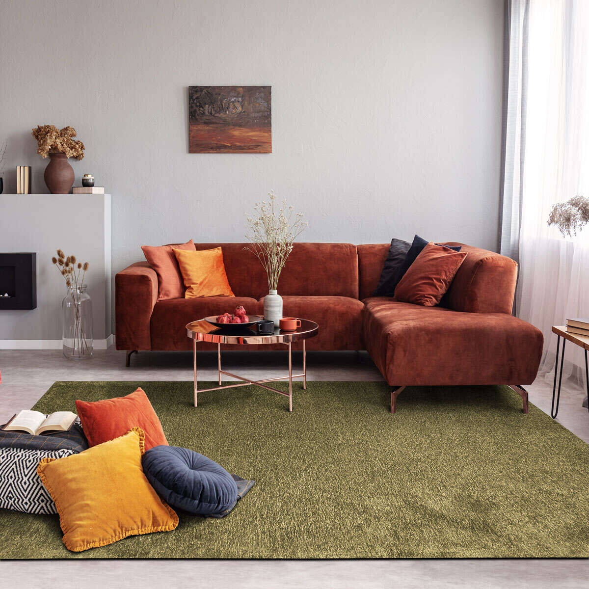 7. SAUVAGE Tapis à poils longs extra-doux vert rouillé 160x230