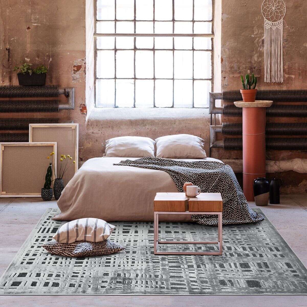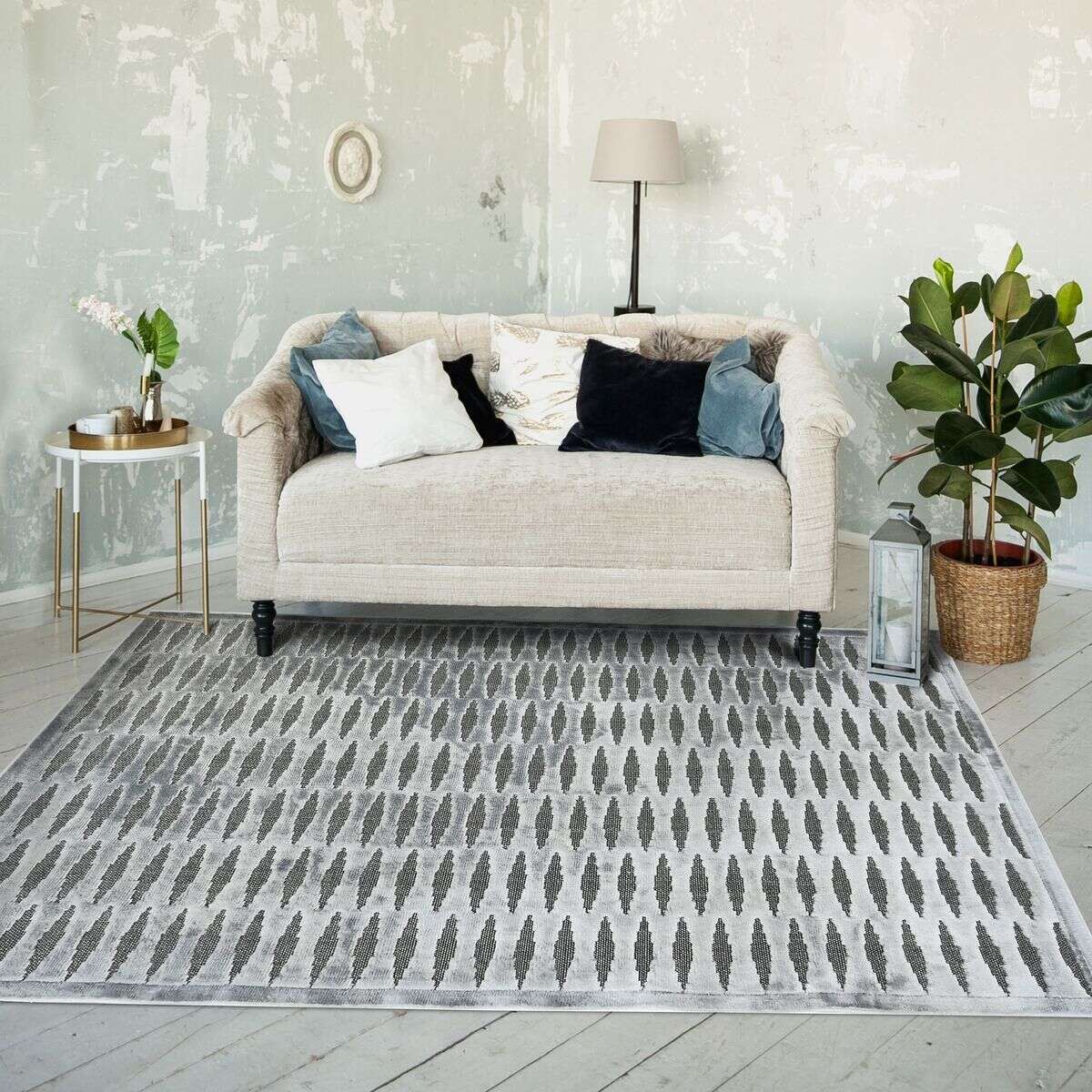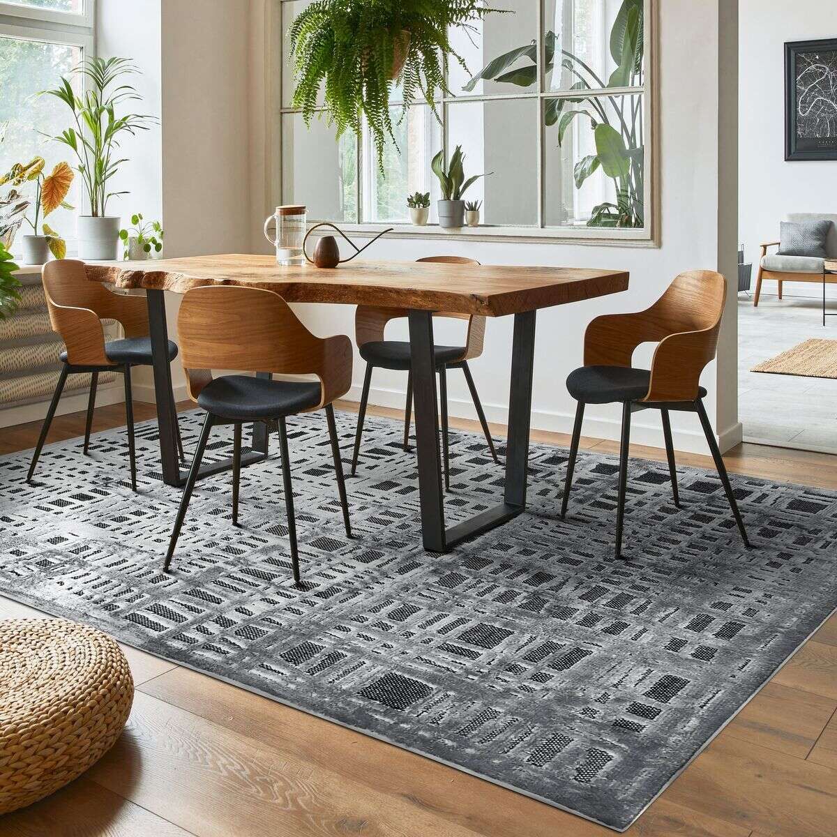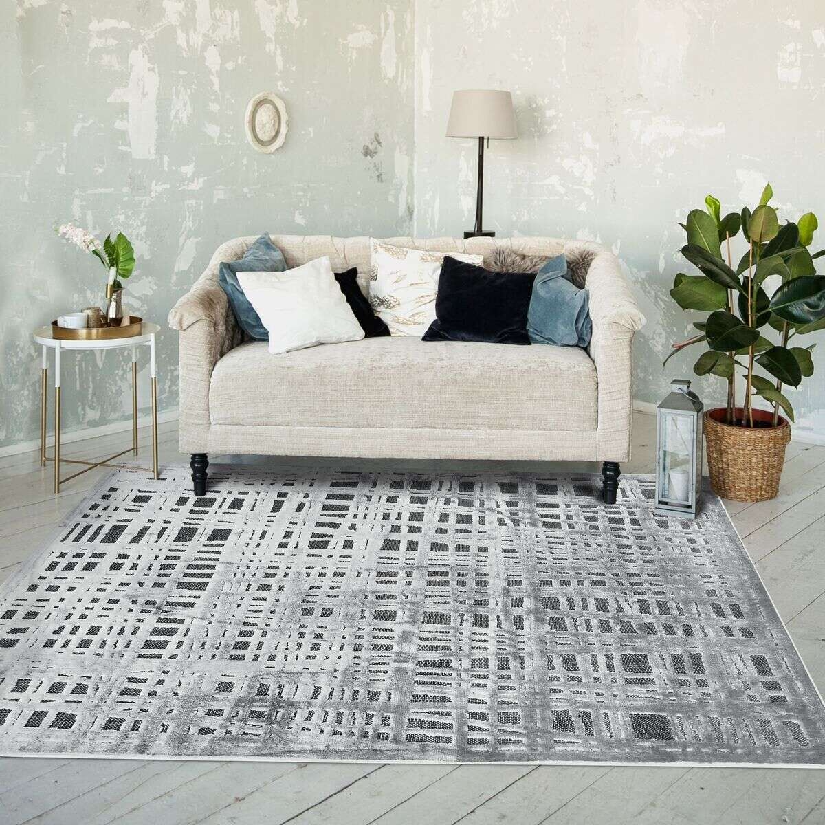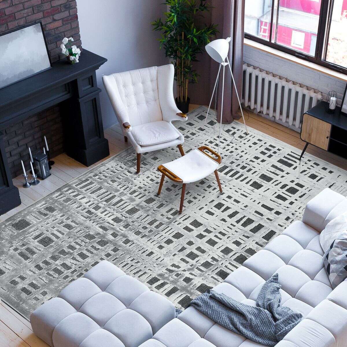 12. EMPRISE CHAINE ET TRAME Tapis avec relief motif chaîne et trame gris 120x170