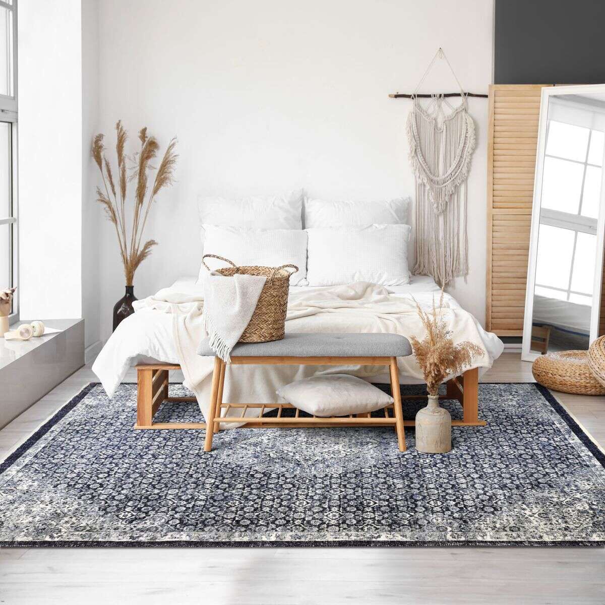 Tapis vintage extra-doux motif médaillon bleu 160x230