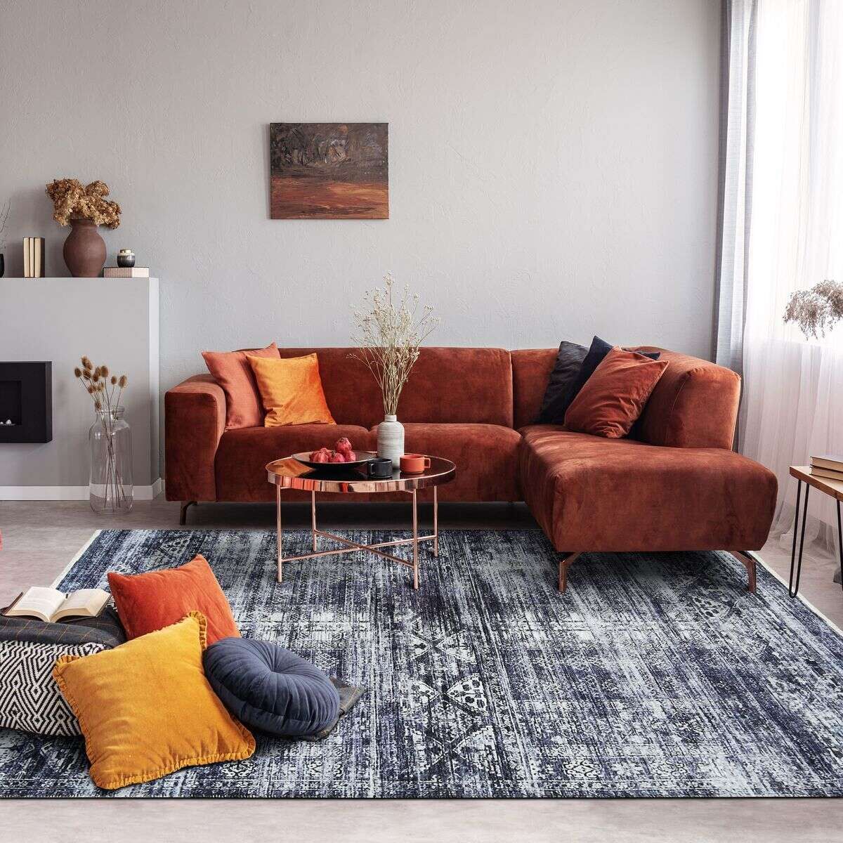 18. USURE DU TEMPS Tapis extra-doux motifs effet vintage bleu 160x230