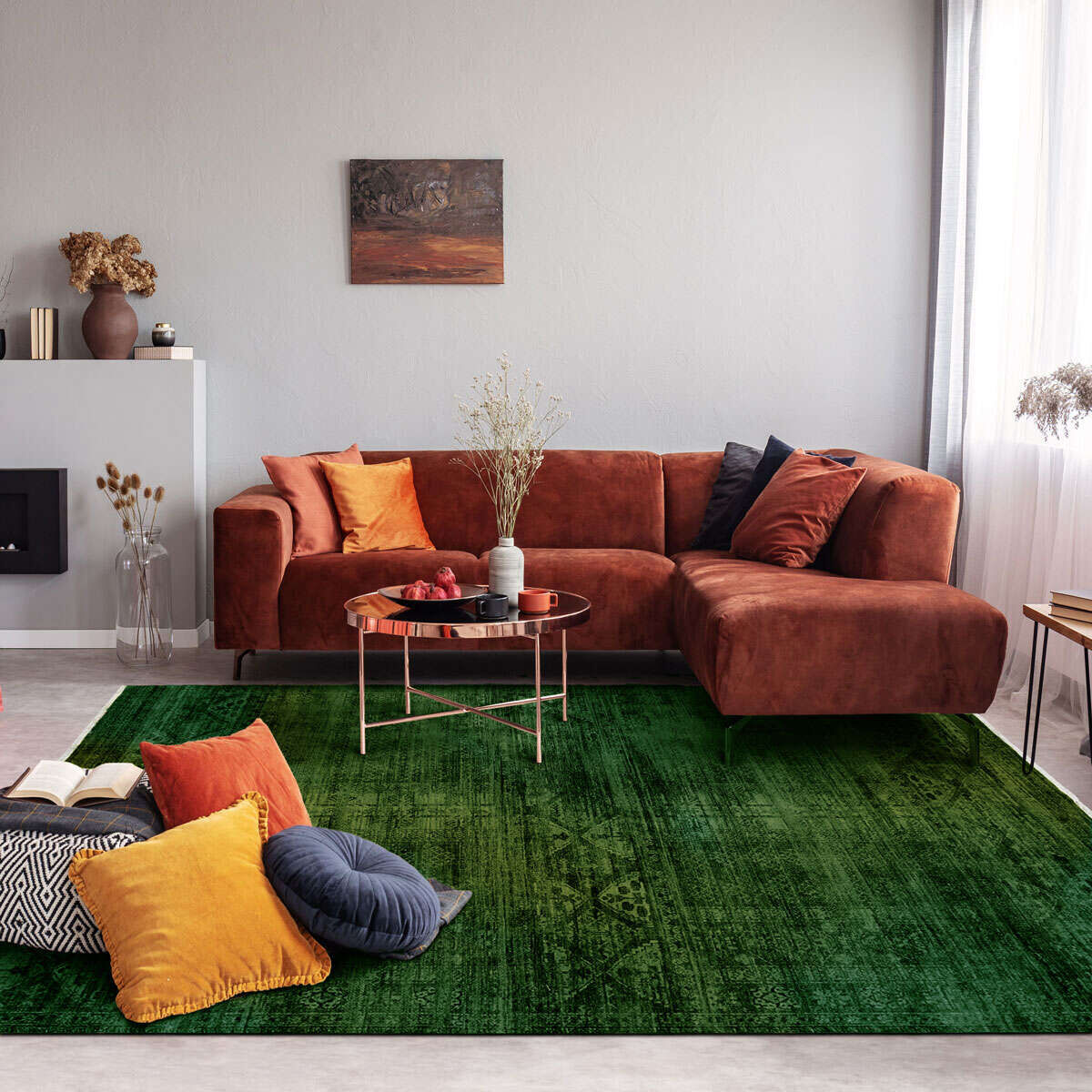 17. USURE DU TEMPS Tapis extra-doux motifs effet vintage vert foncé 160x230