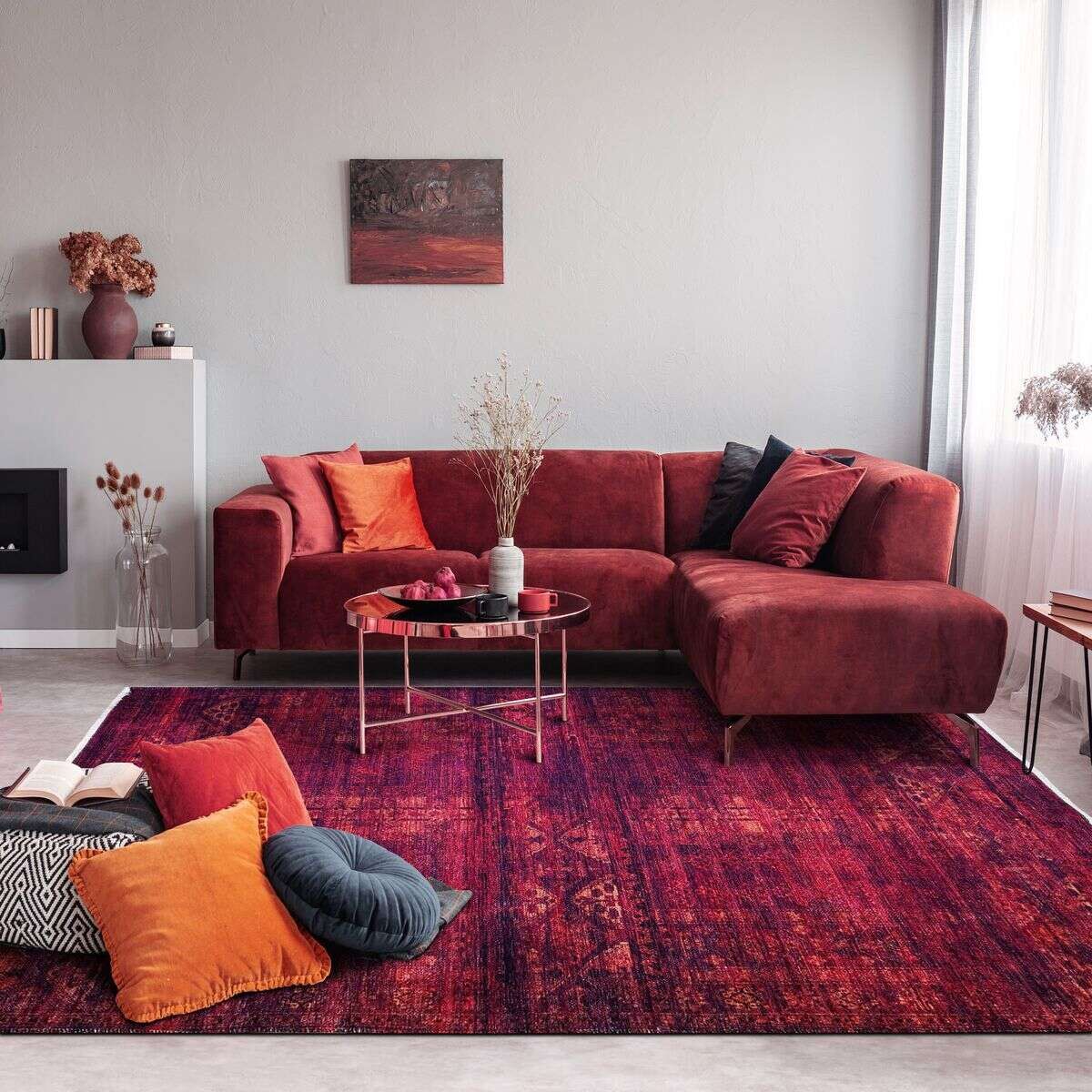 19. USURE DU TEMPS Tapis extra-doux motifs effet vintage cadre rouge 160x230