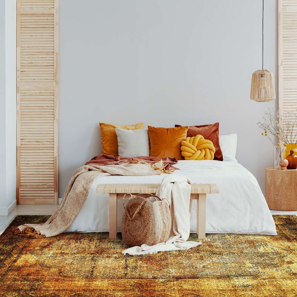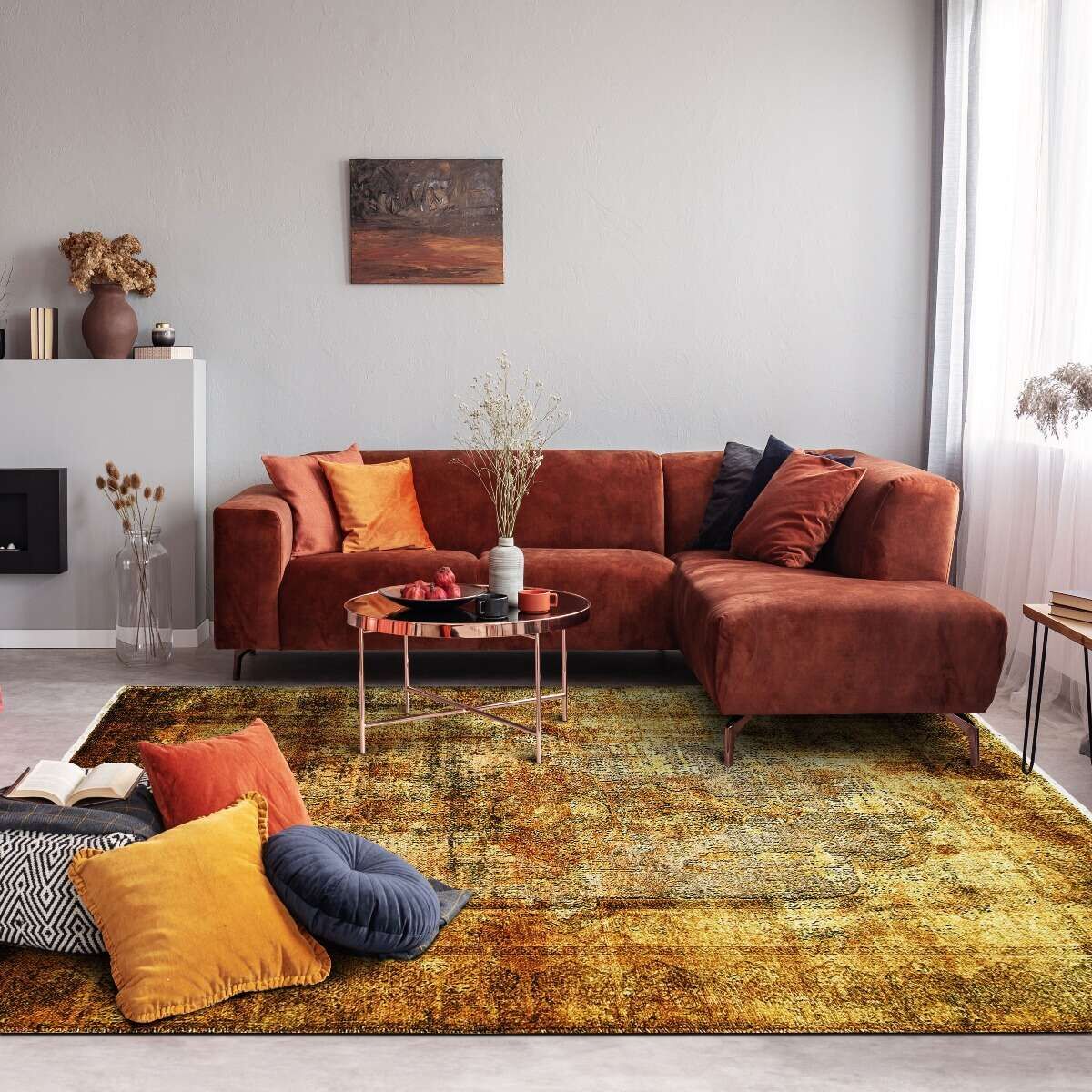 20. USURE DU TEMPS Tapis extra-doux motifs effet vintage jaune doré 160x230