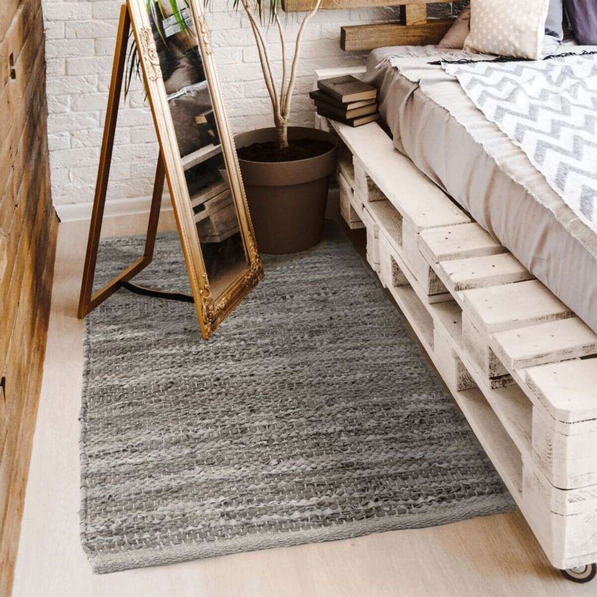 Tapis à poils longs bi-colore taupe et blanc 60x110