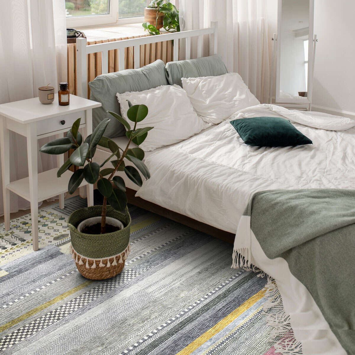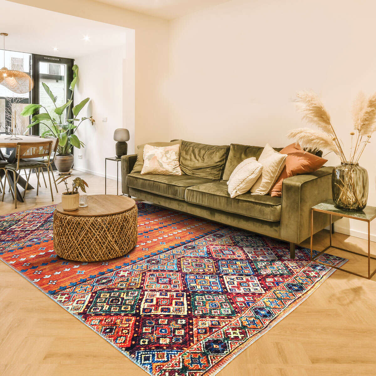 20. OUT STYLE Tapis coloré motifs ethniques ocre vert/bleu 160x230