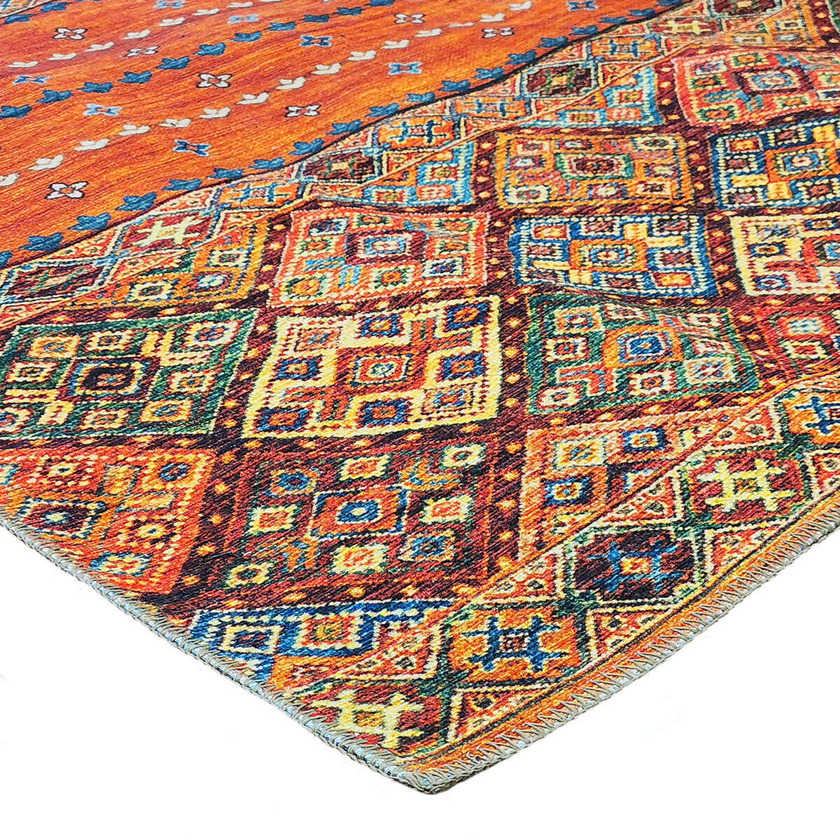 16. DECOUVERTE Tapis coloré esprit ethnique motifs losanges orange 190x290