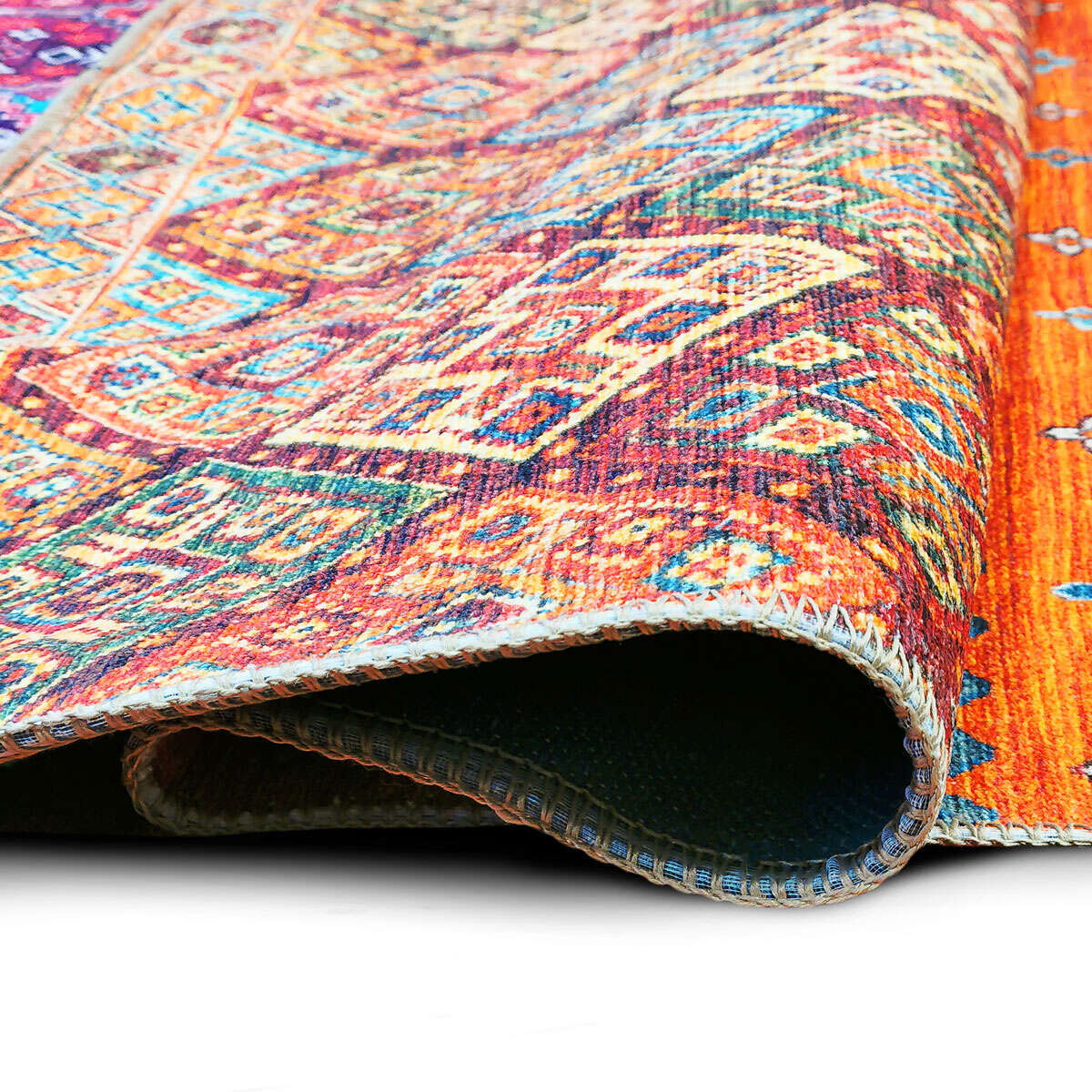 19. OUT STYLE Tapis coloré motifs ethniques rose vert/bleu 160x230