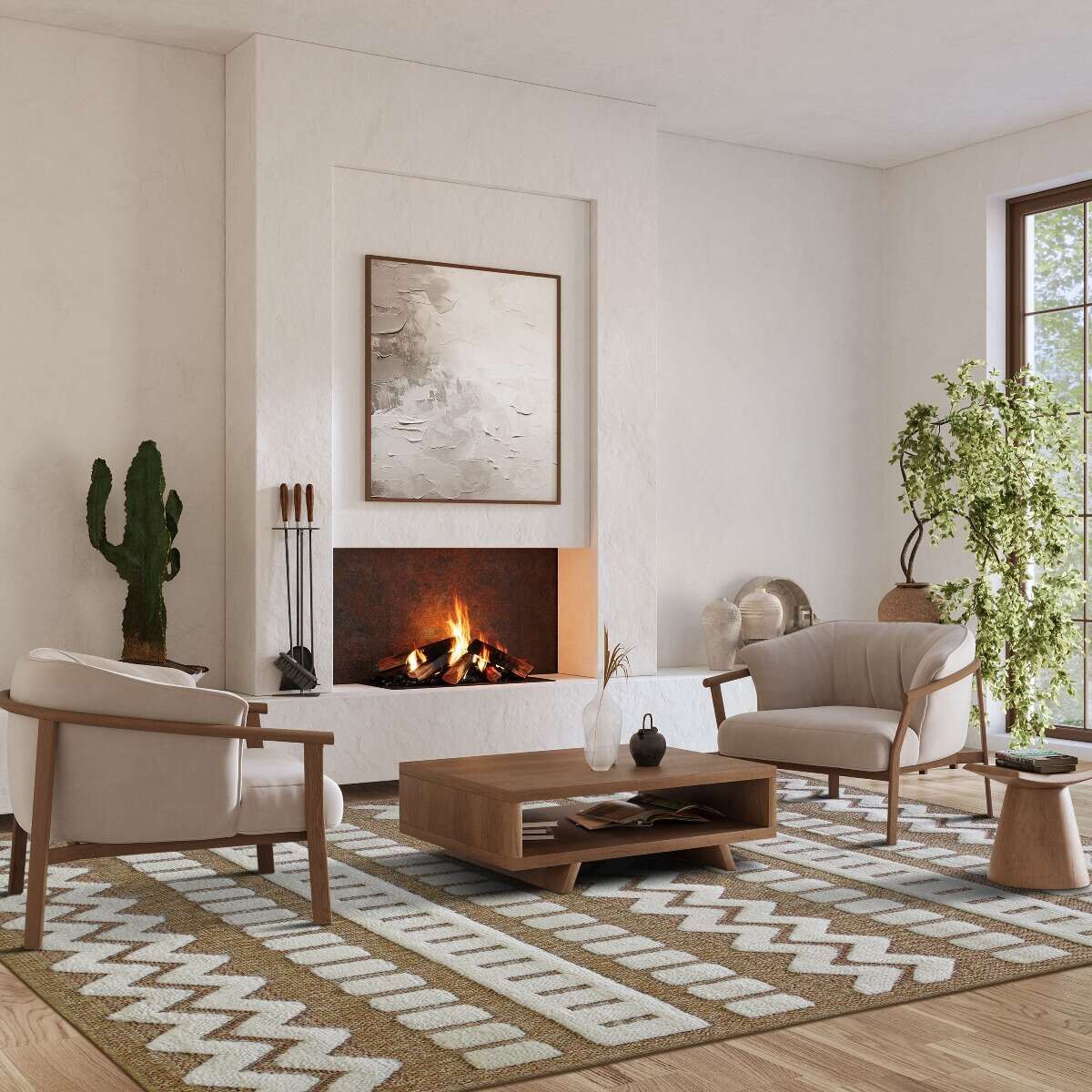 Tapis effet jute à motif géométrique en relief blanc 160x230