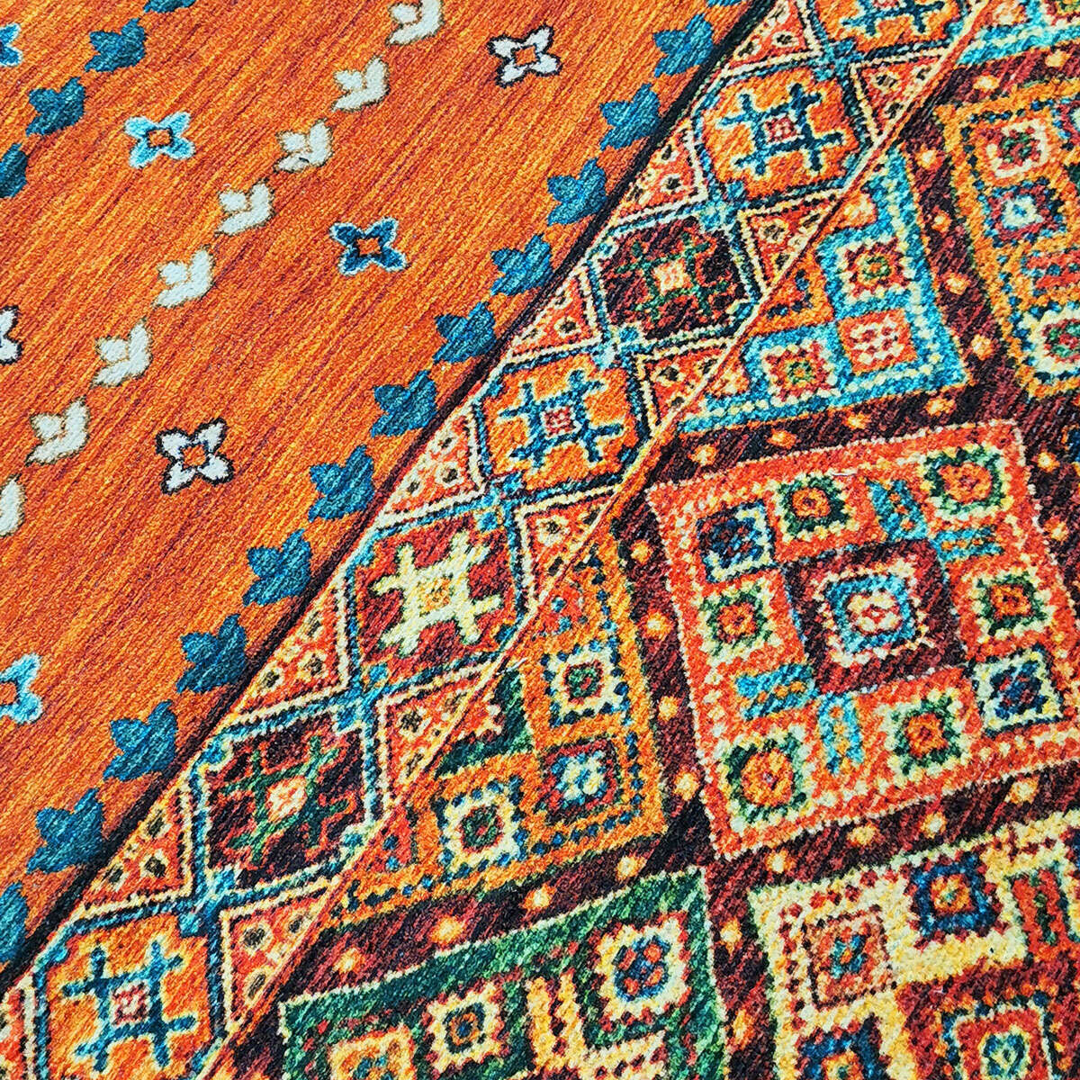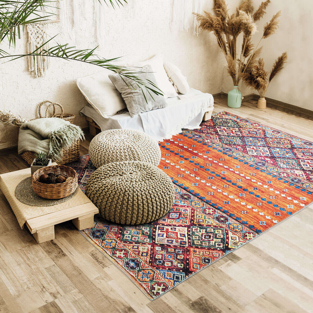Tapis en coton et polyester lavable tissé plat orange 80x150