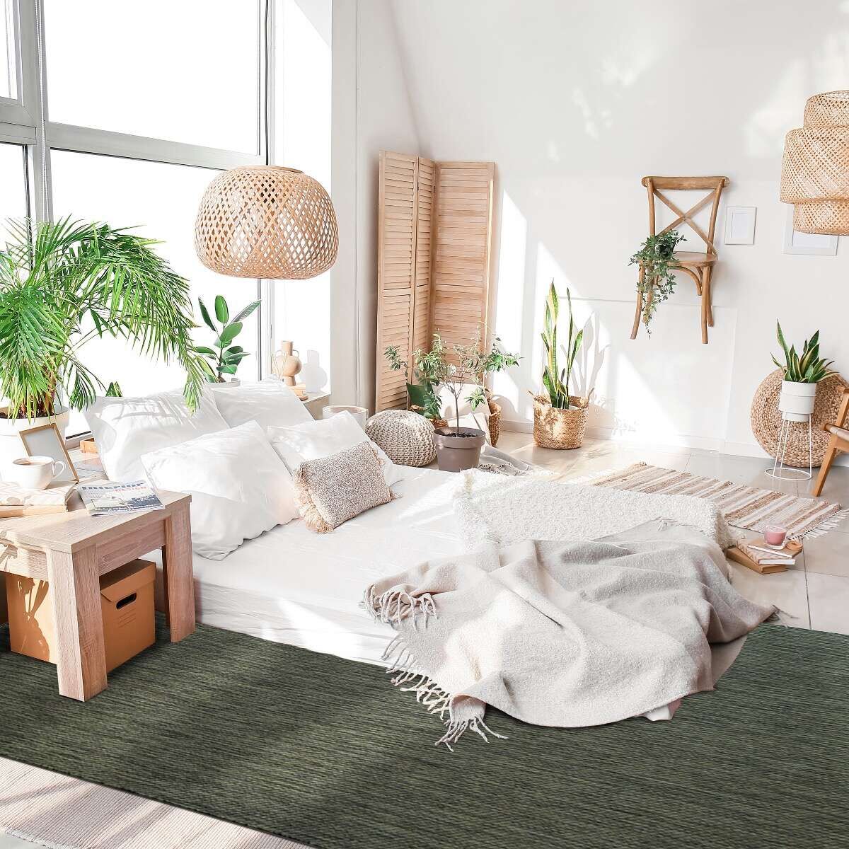 Tapis intérieur-extérieur aspect jute vert foncé 195x275