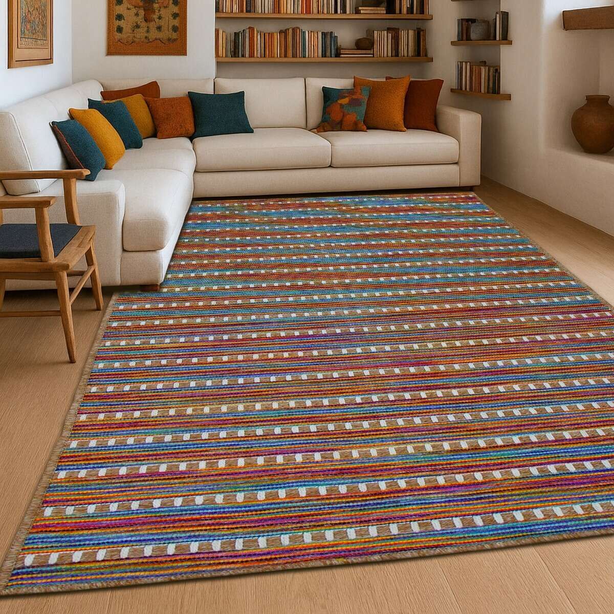 Tapis aspect jute motif rayures beige 120x160