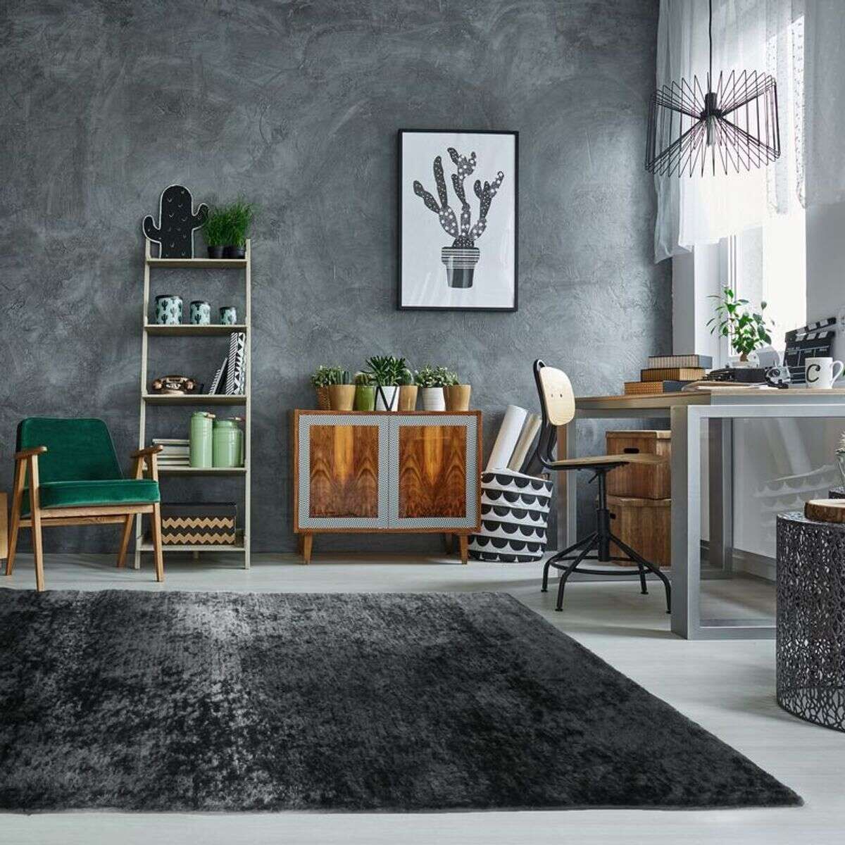 Tapis à poils longs toucher laineux anthracite 190x200