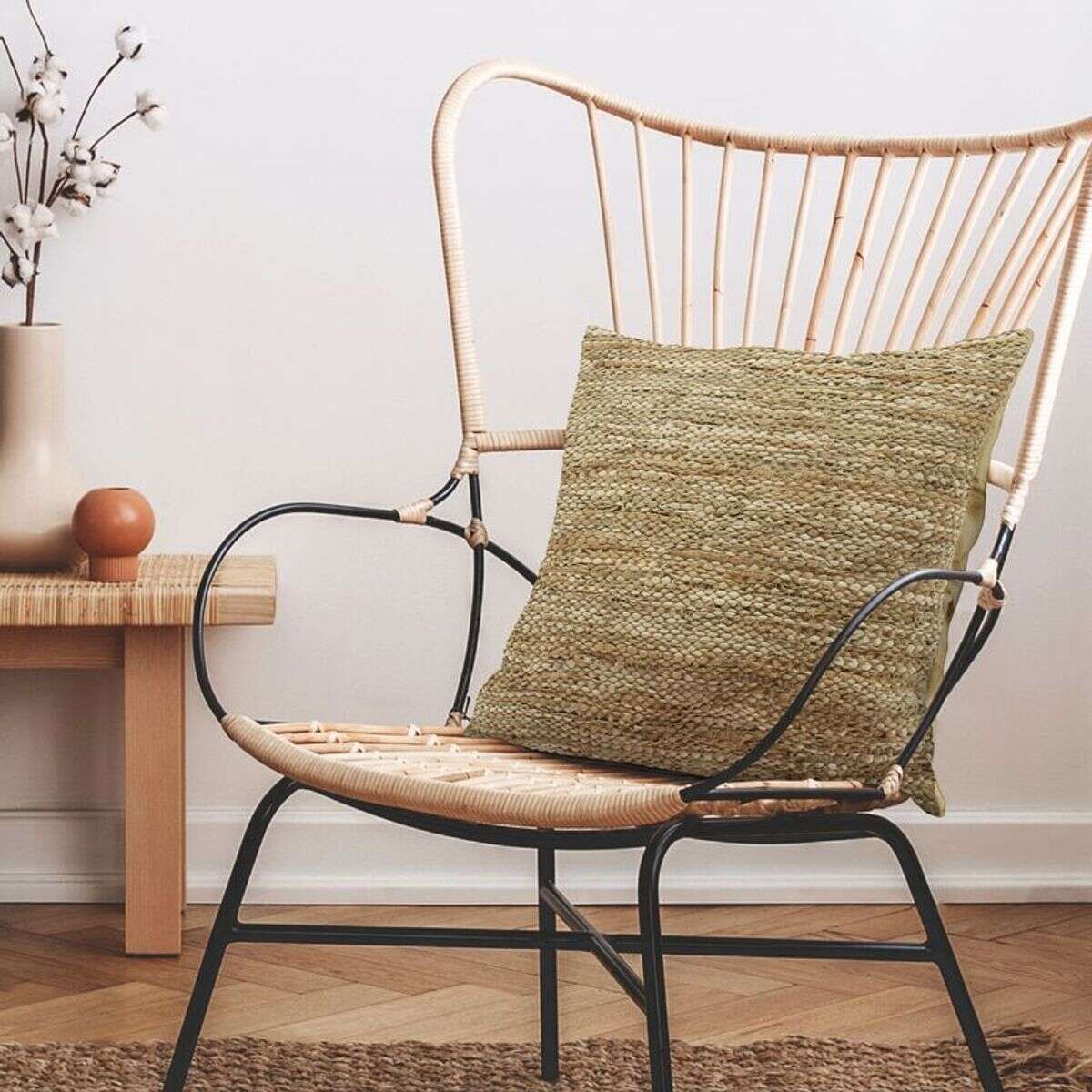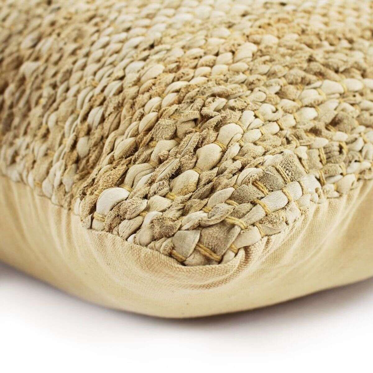 1. SKIN Coussin en cuir tressé ocre 70x70